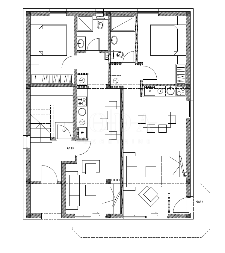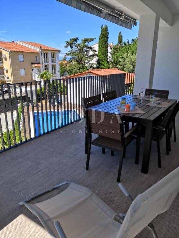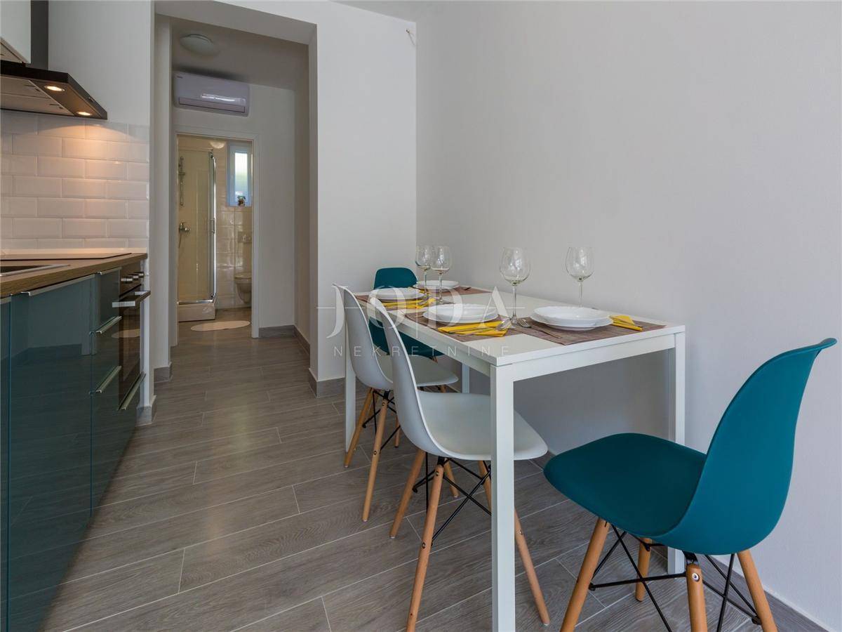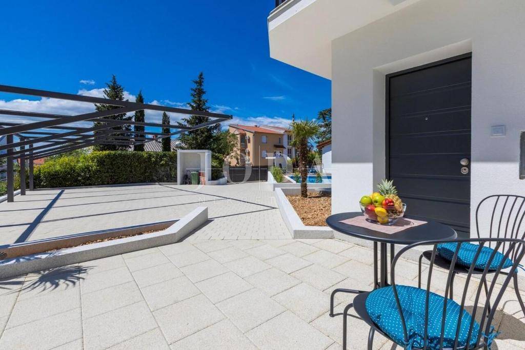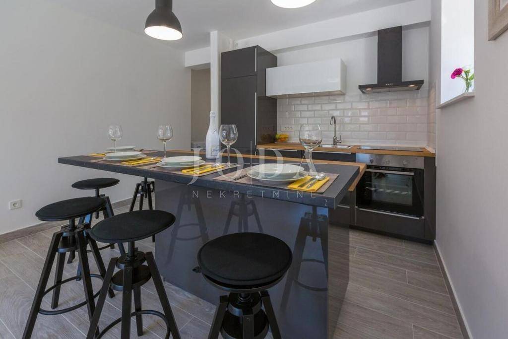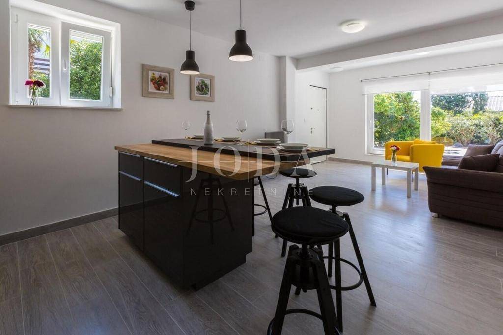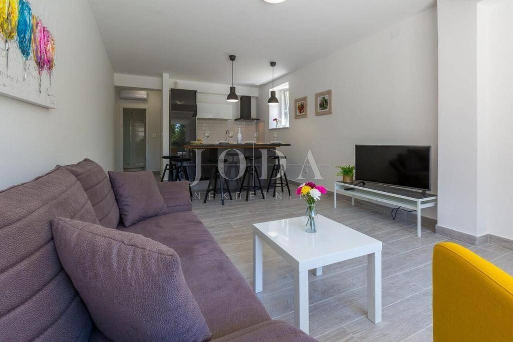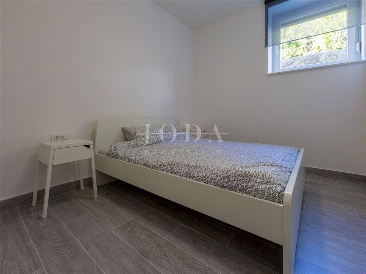 U Dramlju - Crikvenica, nalazi se lijepa, kompletno renovirana samostojeća kuća stambene površine 375m2 te velikom okućnicom. Kuća je tlocrtne površine 12.5x10 te se sastoji od četiri stana te izdvojenog objekta u dvorištu iza kuće. U prizemlju se nalaze dva stana. Manji stan je površine 37m2 + 3m2 terasa dok je površina većega stana u prizemlju 44m2 + 10m2 terasa. Na prvome katu nalazi se stan od 75m2 + 25m2 terase dok na drugome katu stanu iste površine kao i na prvome katu pripada još i malo spremište od 1,5m2. U dvorištu je odvojeni objekt sa terasom površine je 30m2. U dvorištu je i natkriveni parking gdje je moguće parkirati pet vozila te predivni bazen površine 32m2. Na objektu su obnovljene sve instalacije (voda, struja, kanalizacija), postavljena je nova vanjska PVC stolarija te unutarnja stolarija. Također u kući su novi podovi,kupaonice dok je sa vanjske strane nova fasada, krov i novo popločenje dvorišta. Ulazi u stanove opremljeni su protuprovalnim vratima, napravljena je i priprema za alarmni sustav te svaka soba u kući ima klima uređaj. Kuća se prodaje kompletno opremljena sa svim namještajem. Objekt, s obzirom na lokaciju i uređenost je svakako i dobra prilika za investiciju i turističku djelatnost, kategoriziran je sa 4* te može dobiti i 5* i na Booking.com stranici je ocijenjen sa ocjenom 9.6 (exceptional). Dobra mikrolokacija i predivan pogled, te sve prije navedeno su razlozi zbog kojih ova nekretnina zasljužuje Vašu pažnju.