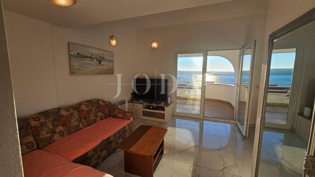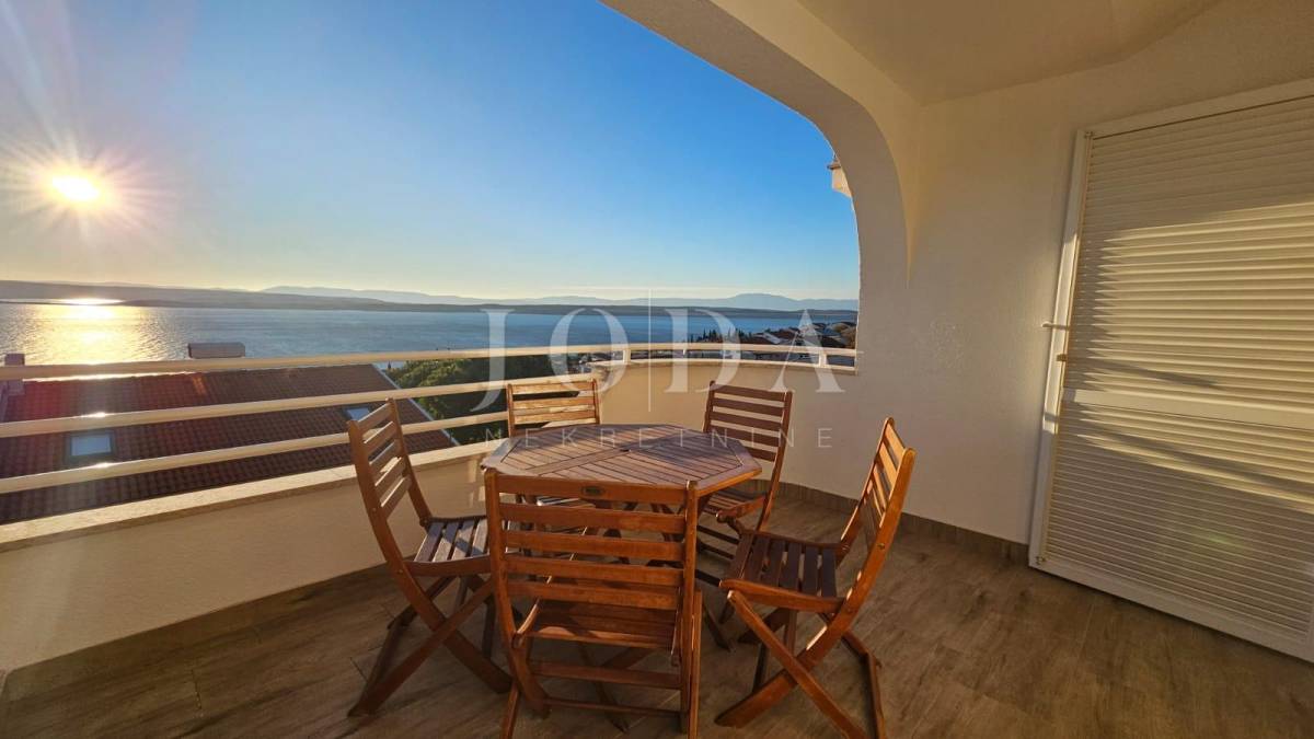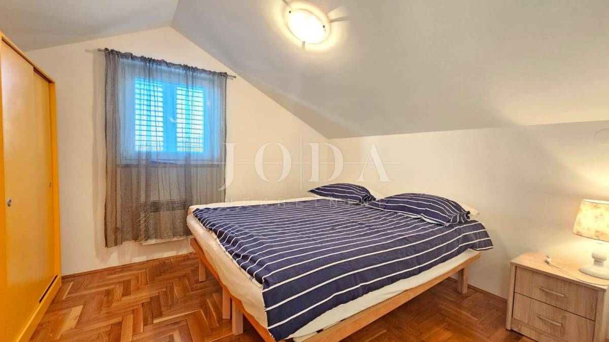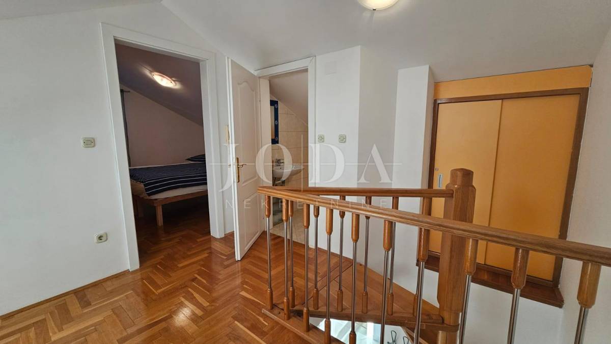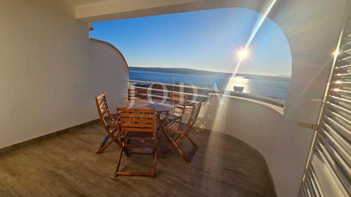 Prodaje se prostran stan od 83,50 m², smješten na 2. katu zgrade, u mirnom i atraktivnom dijelu, nedaleko od mora. Stan se sastoji od ulaznog predprostora sa spiralnim stubištem, dnevnog boravka, blagovaonice i kuhinje, dvije spavaće sobe, kupaonice te velike terase površine 61,53 m² s predivnim pogledom na more. Spiralno stubište vodi u visoko potkrovlje površine 21,97 m², koje uključuje galeriju, dodatnu sobu, WC te ostavu.