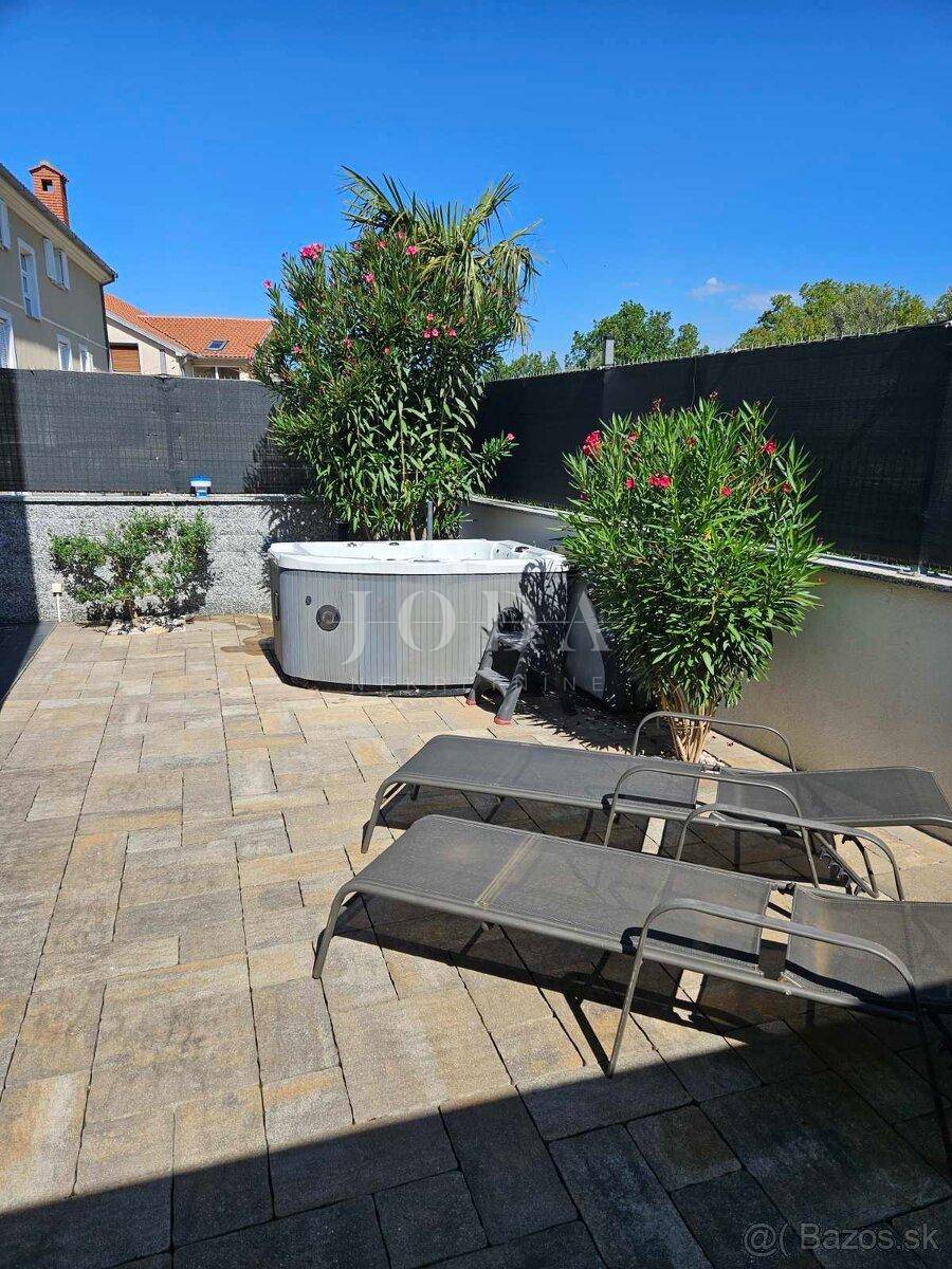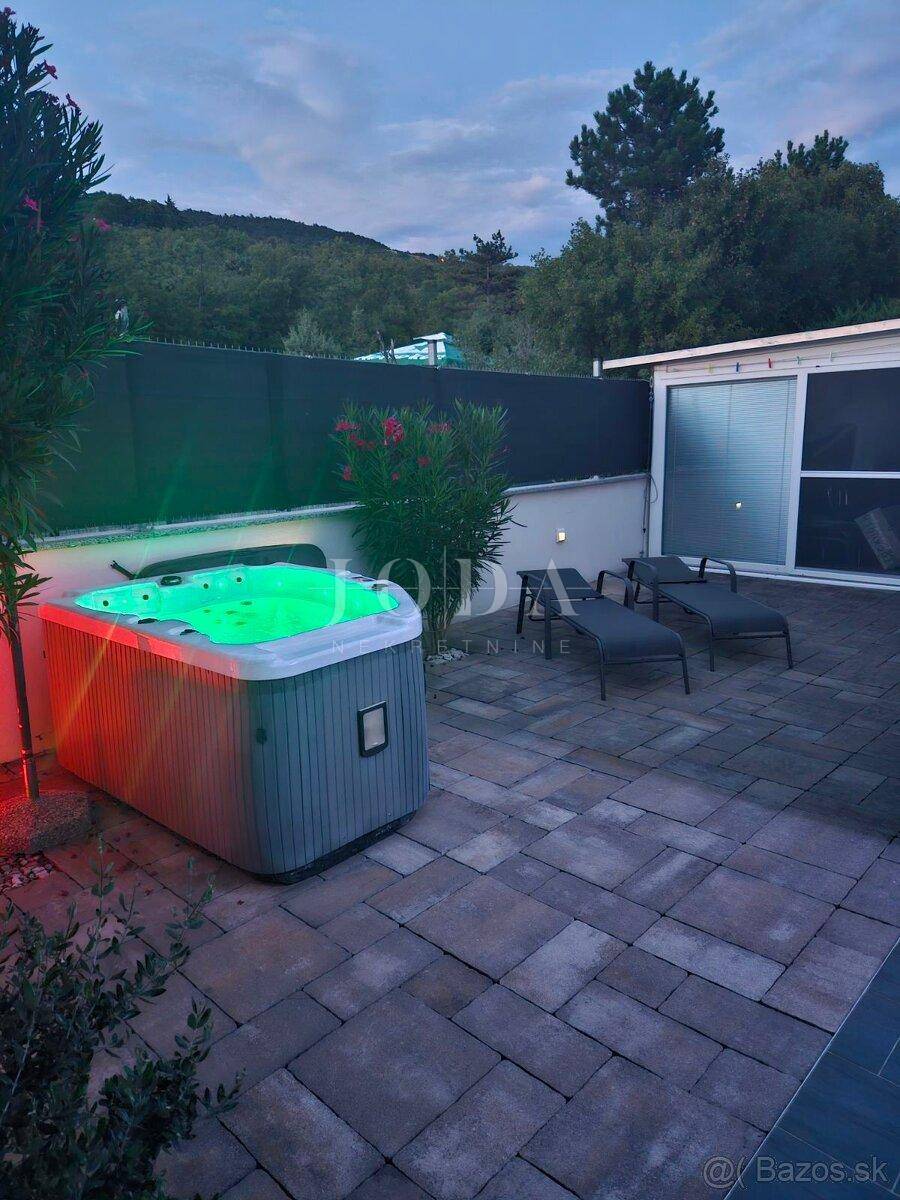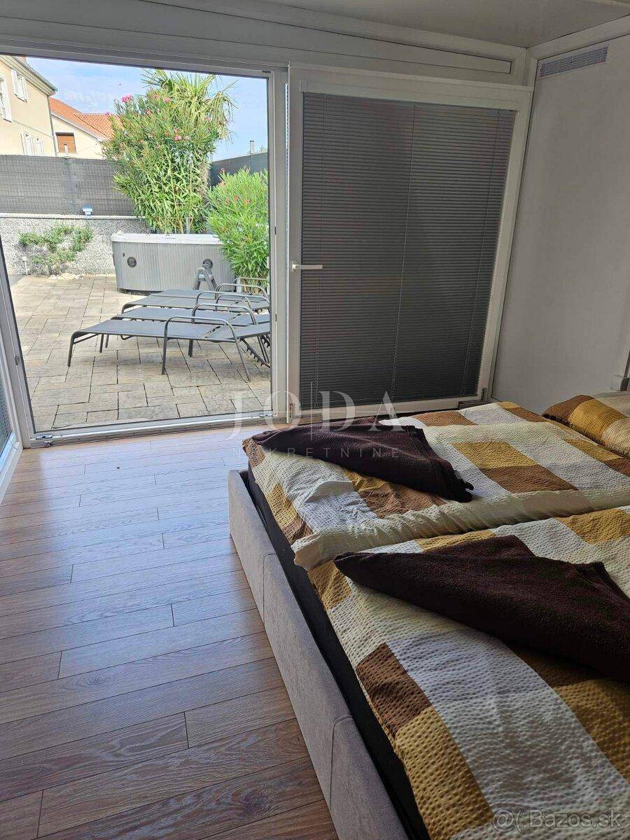 U sklopu uređene i ograđene okućnice nalazi se vanjski, montažni, smještajni objekt u kojem je uređena komforna spavaća soba, tako da je u naravi dvosobni stan sa dnevnim boravkom i terasom. U sklopu okućnice nalazi se i jacuzzi.
