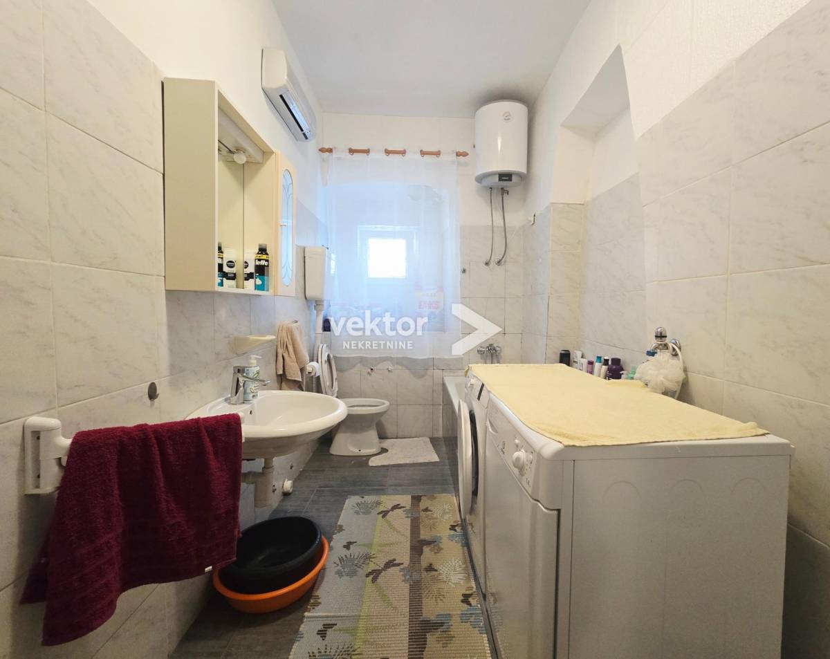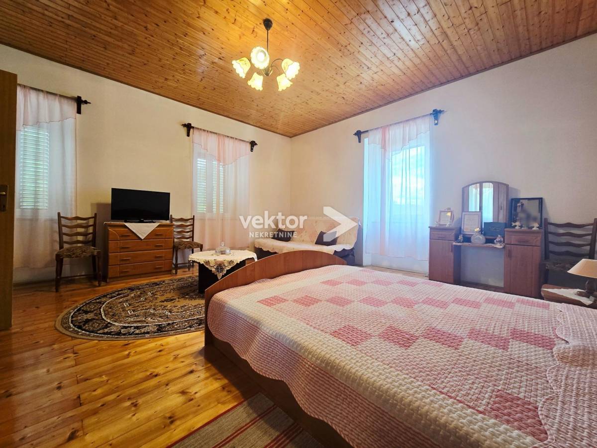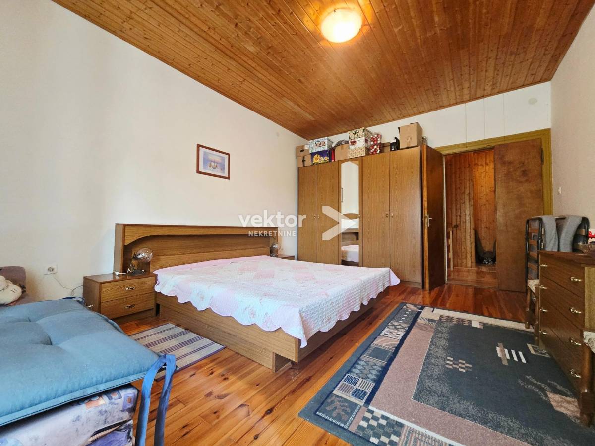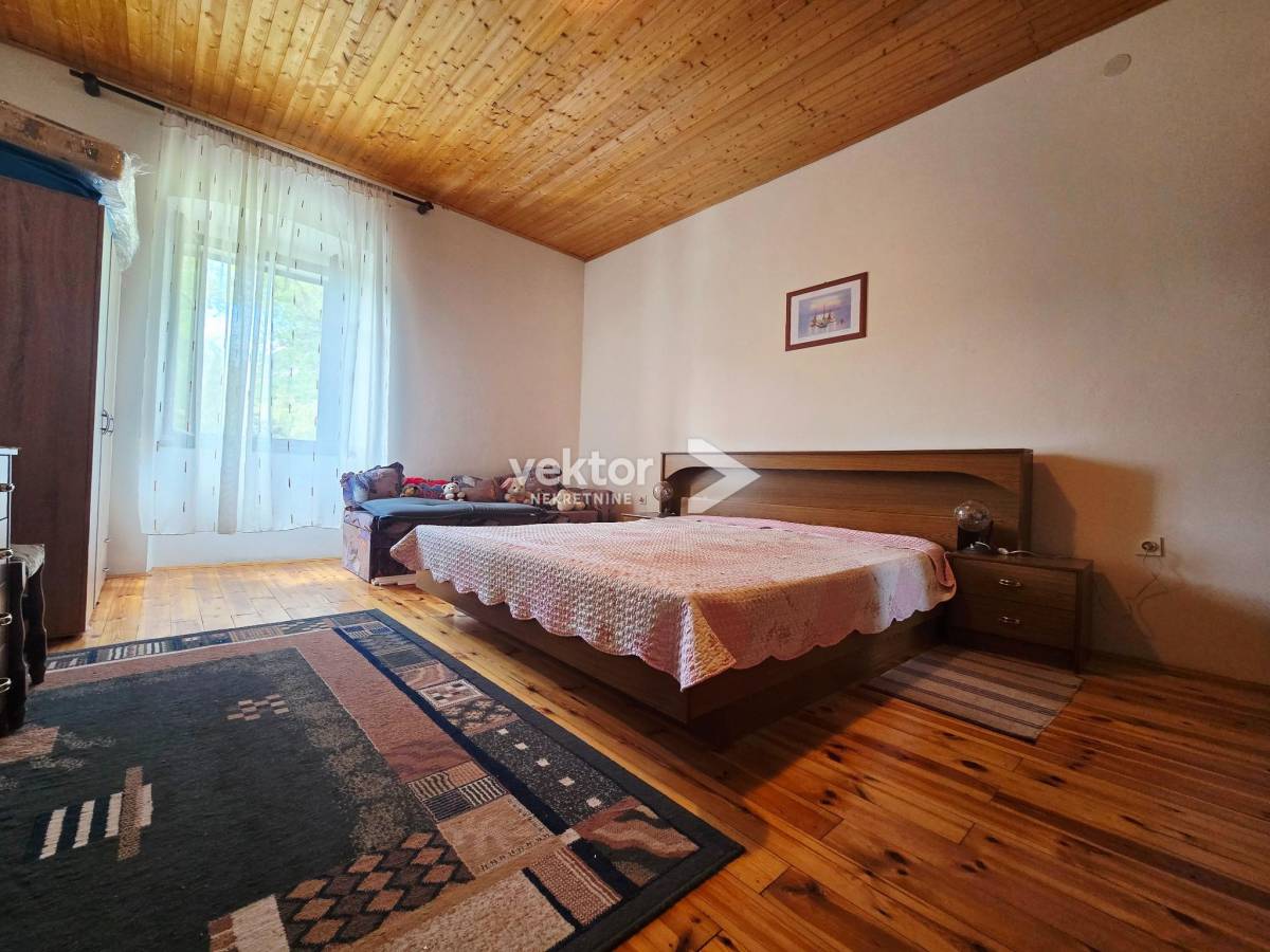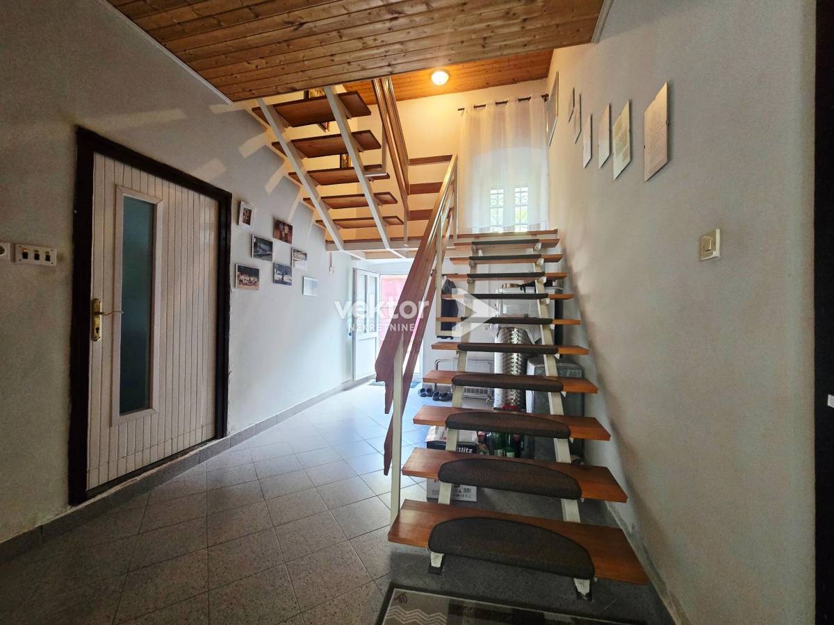 U prizemlju se nalaze dnevni boravak, kuhinja, kupaonica i hodnik, s direktnim izlazom na lijepu, zelenu okućnicu – idealnu za opuštanje, druženja ili uređenje vrta. Okućnica je održiva i praktična, nije prevelika za zahtjevno održavanje.