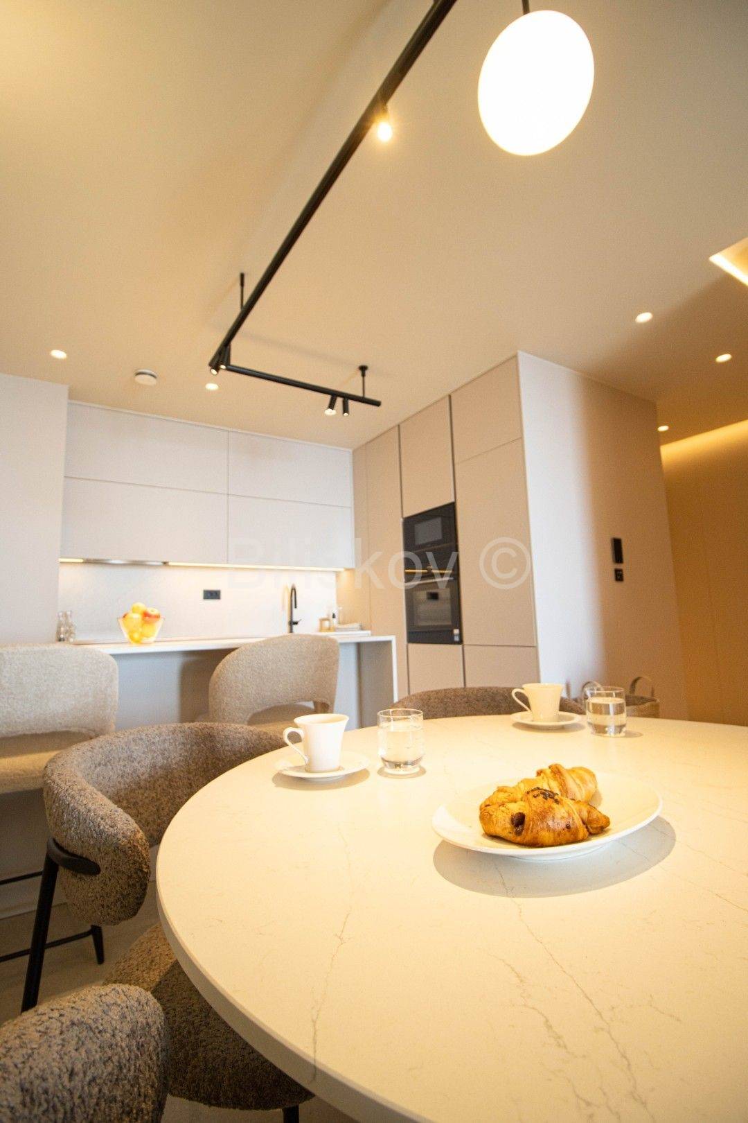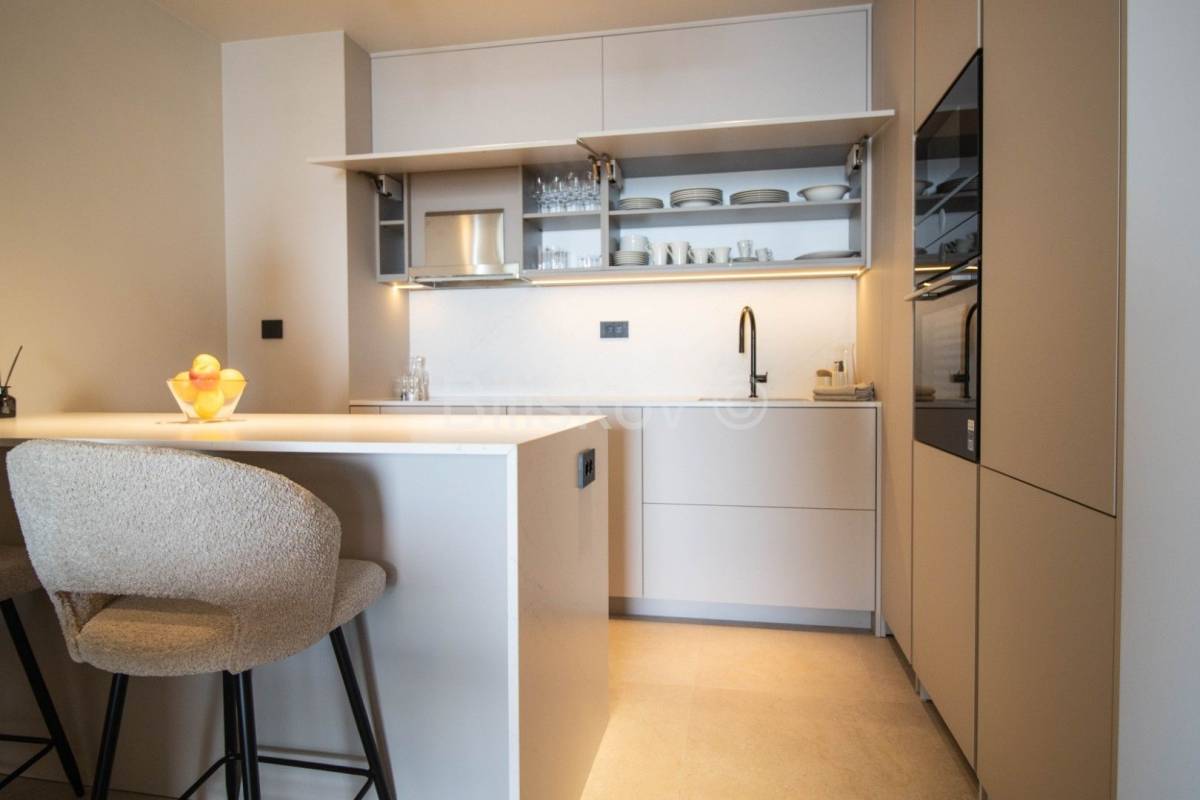 Stan se sastoji od kuhinje s trpezarijom i dnevnog boravka, dvije spavaće sobe te svaka spavaća soba ima svoje kupatilo, te lođe s otvorenim pogledom.