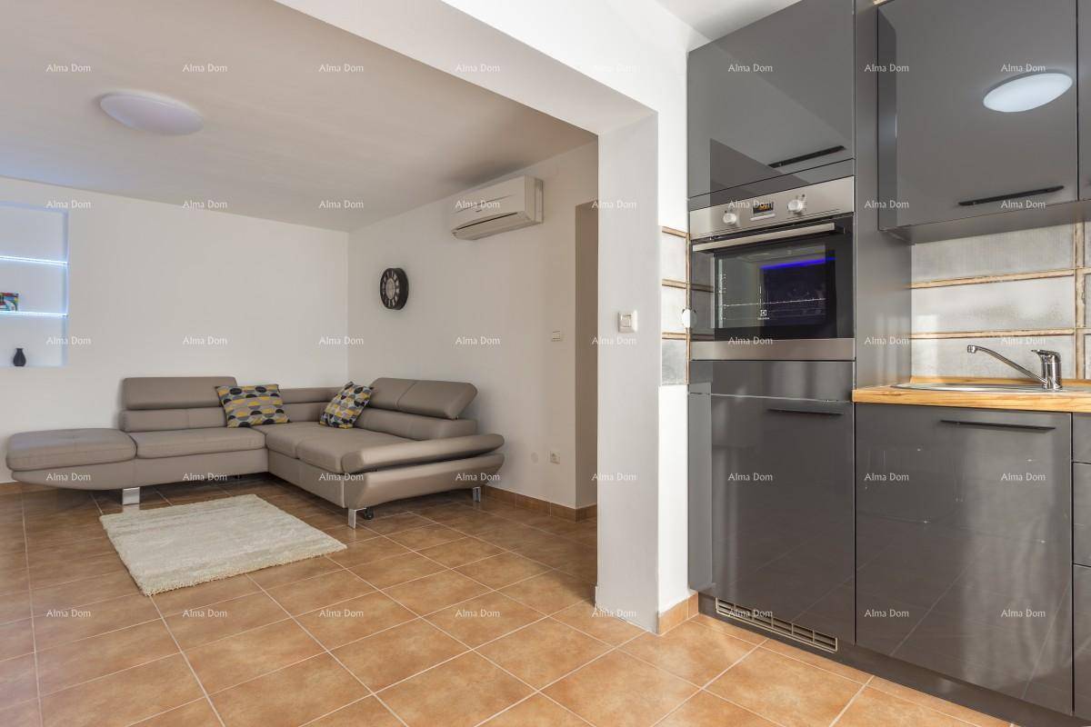 Na katu stan koji se sastoji od hodnika, kupaonice, dvije spavaće sobe, kuhinje s dnevnim boravkom i blagavaonicom.Ostava u podrumu koja je povezana s stanom.