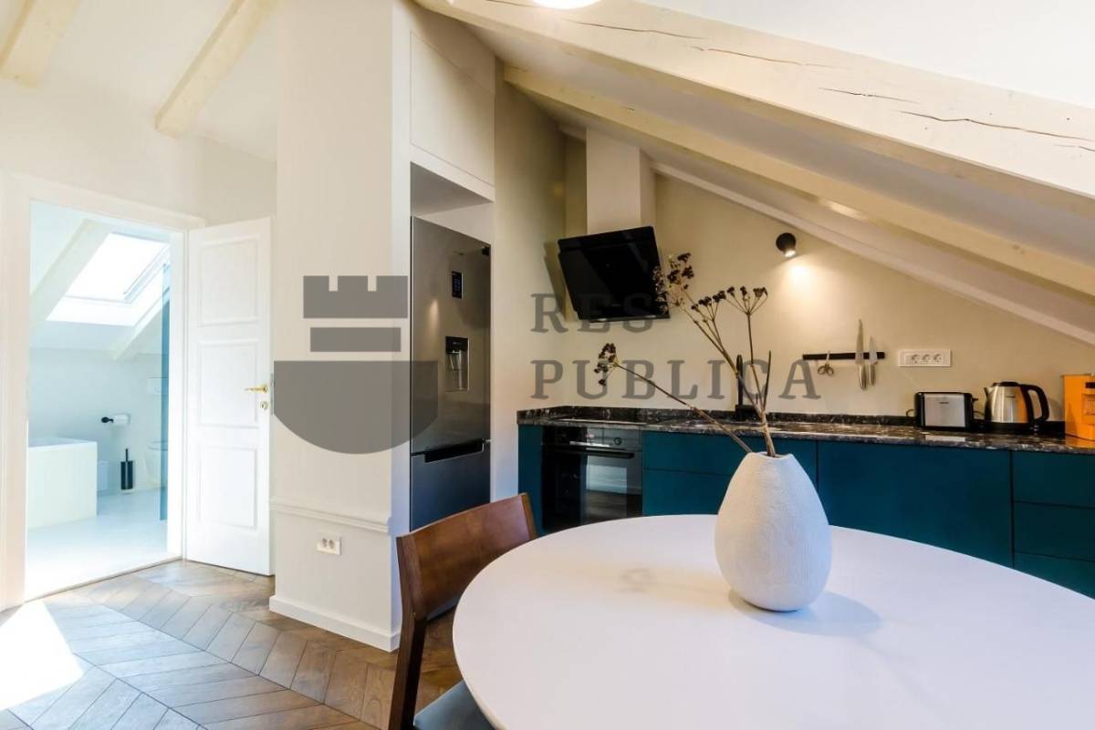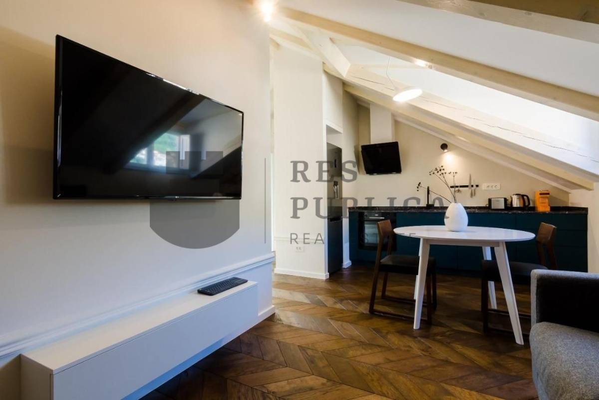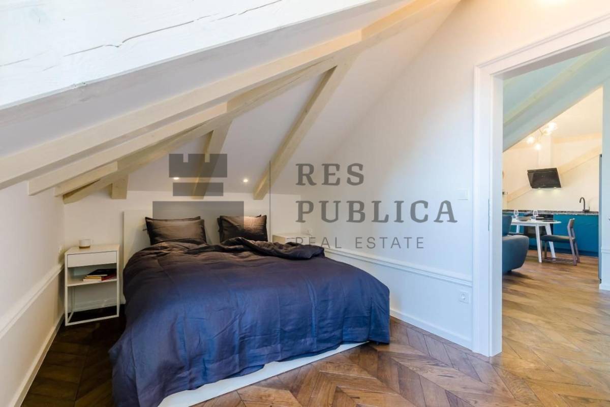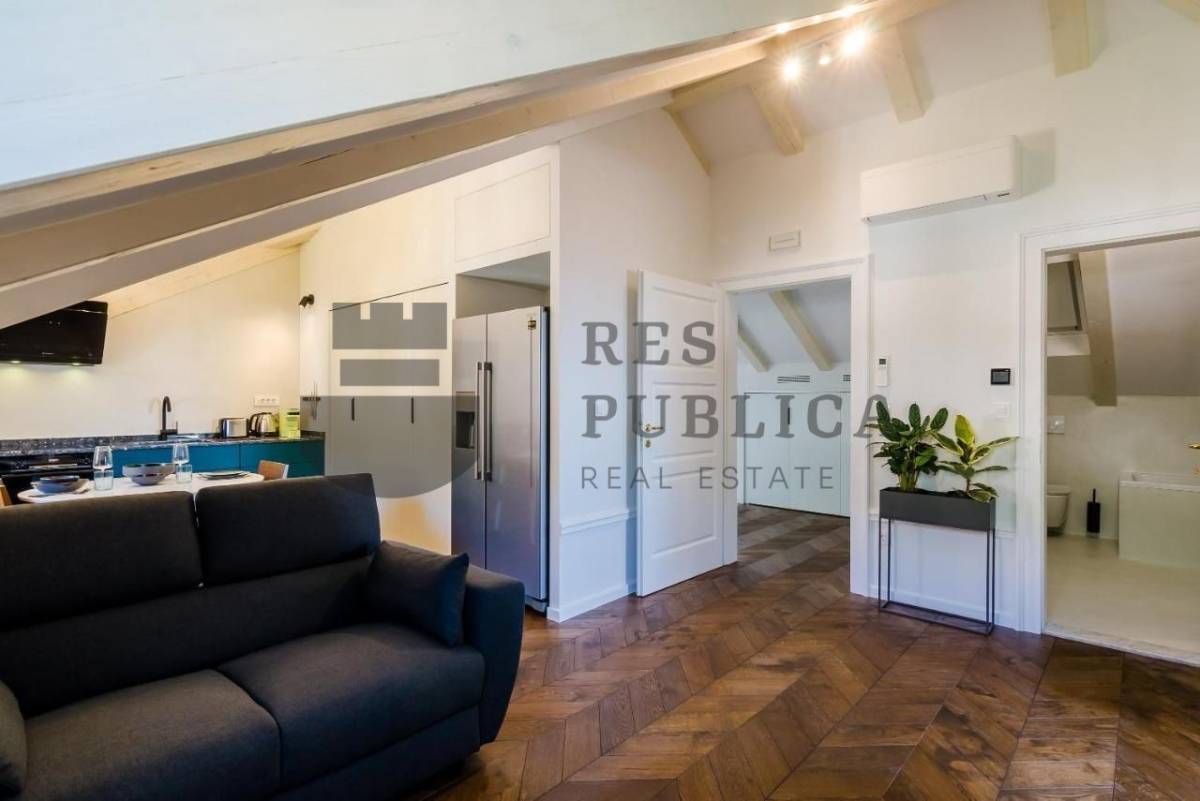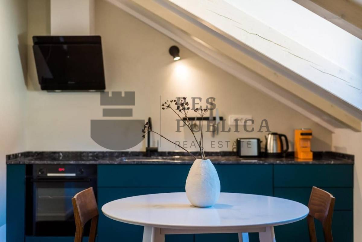 Na prodaju kompletno uređen stan u potkrovlju starije zgrade, površine 78 m² sa predulazom, koji se u naravi sastoji od dva moderno opremljena apartmana.