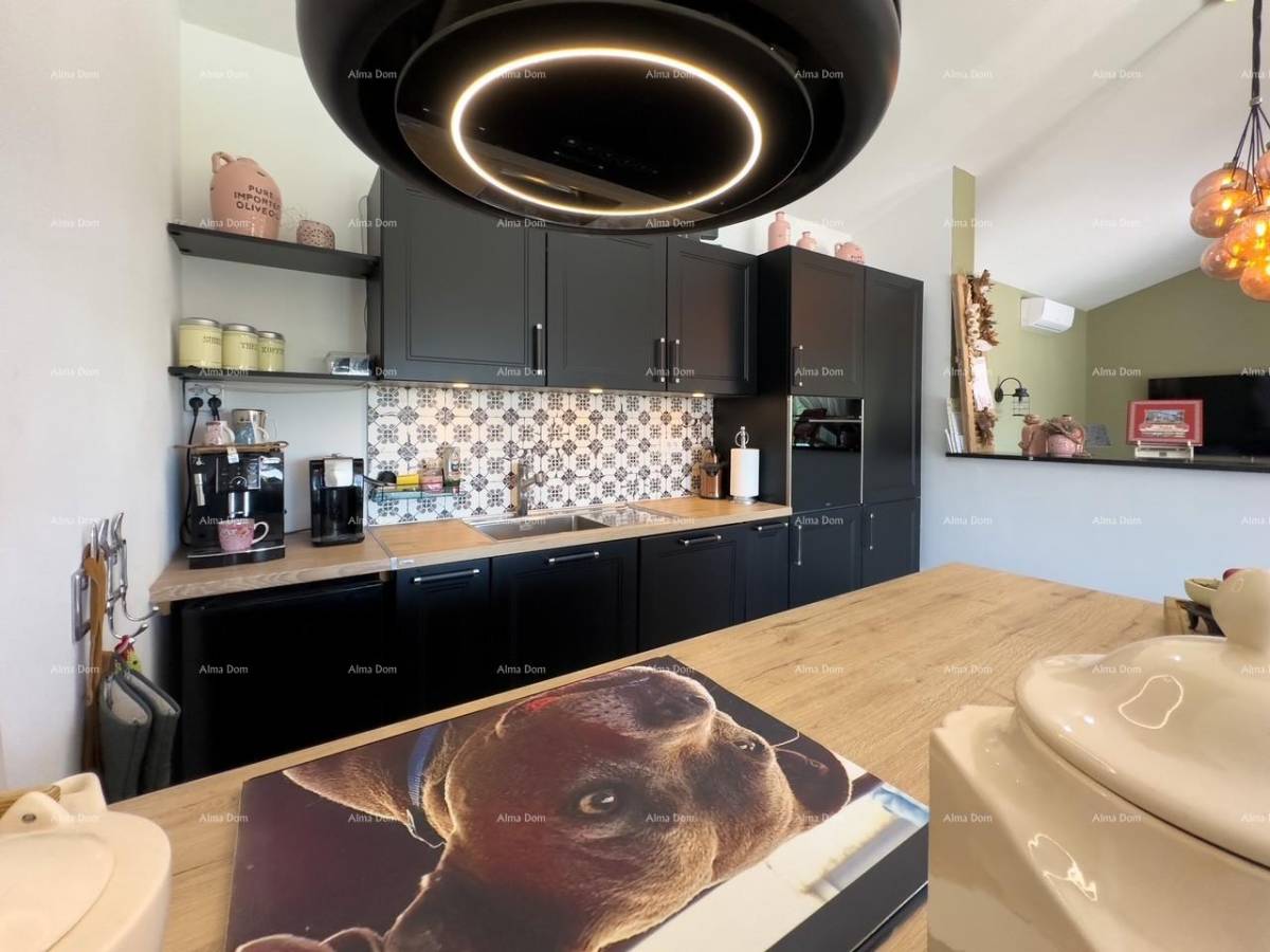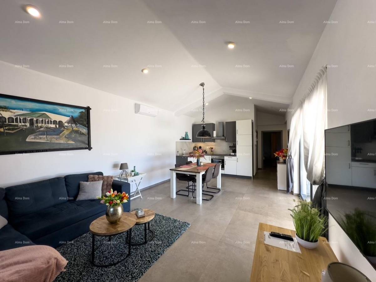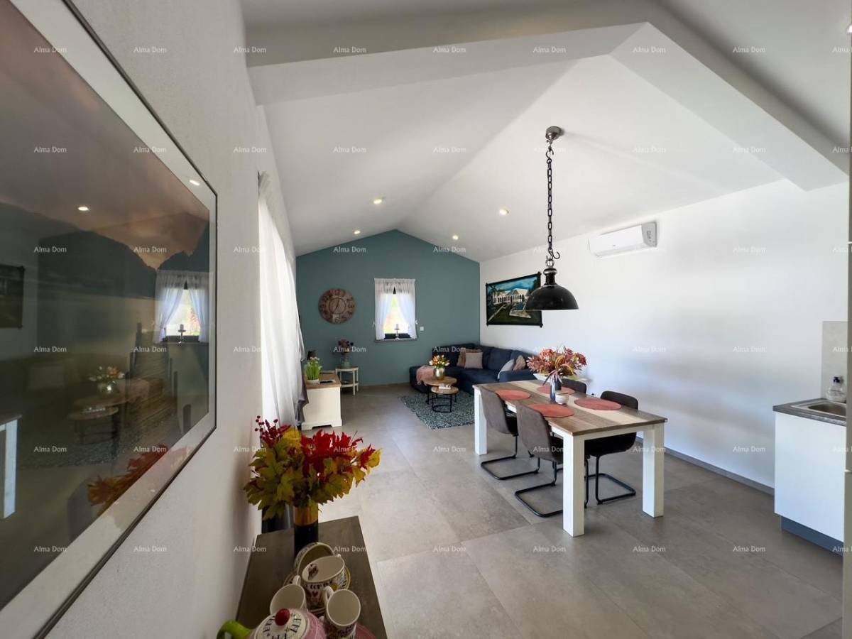 Veća kuća (120m2) sastoji se od tri spavaće sobe, jedna ima svoje kupatilo dok druge dvije dijele kupatilo. Kuhinja, blagovaonica i dnevni boravak iz kog se pruža pogled na Učku i zelenilo.