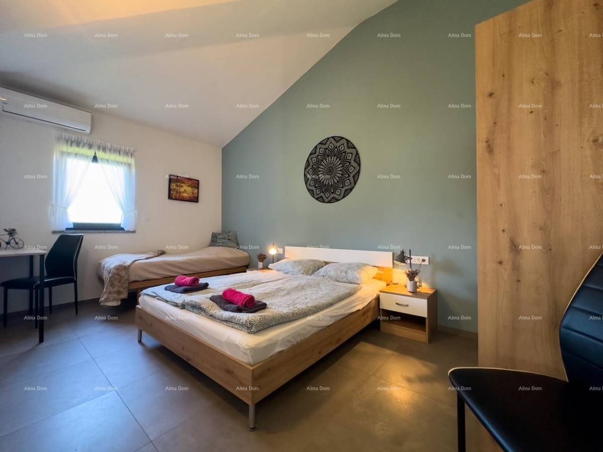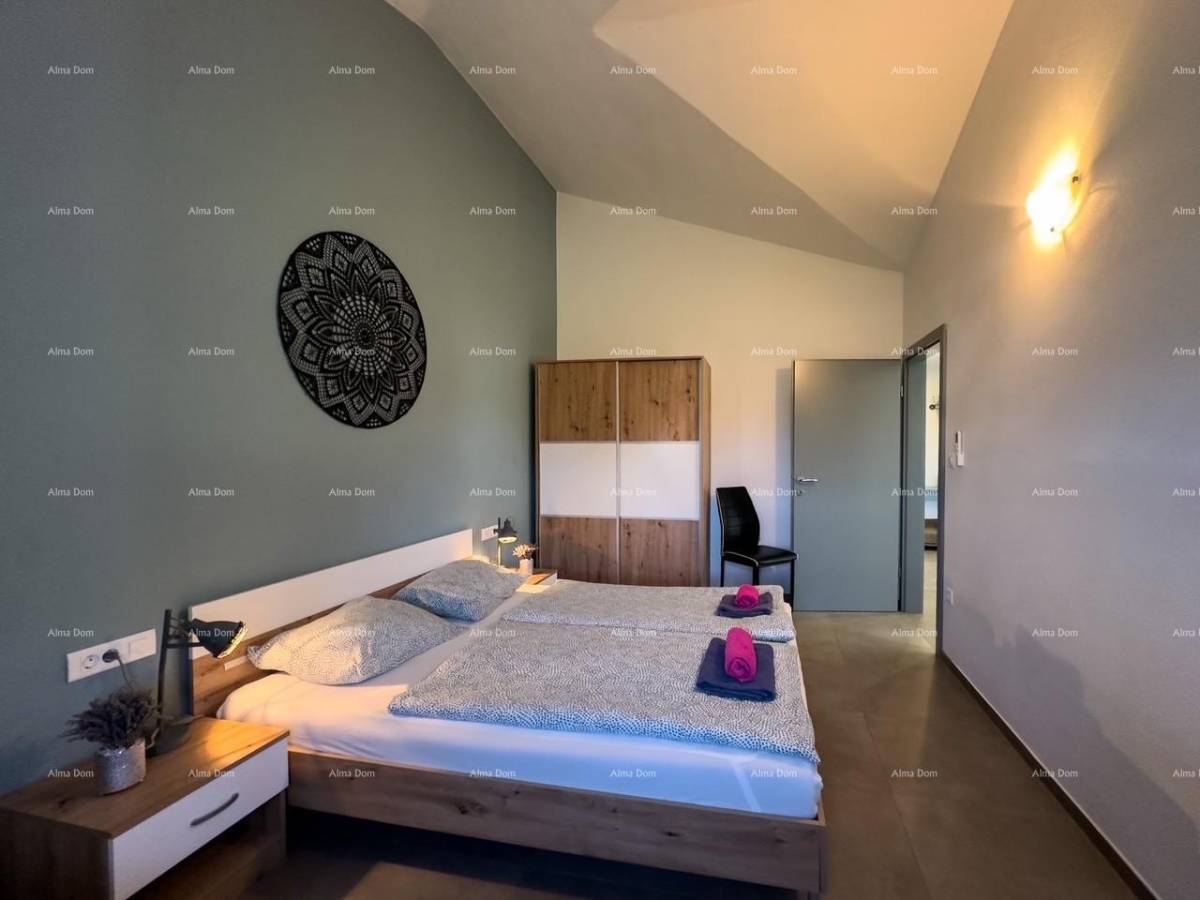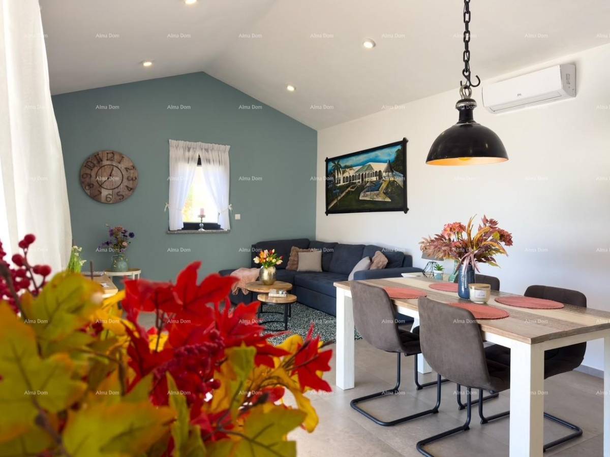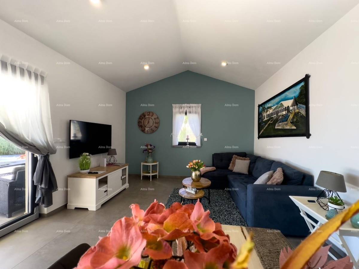 Manja kuća (84m2) sastoji se od dvije spavaće sobe, kupatila, toaleta, kuhinje, blagovaonice i dnevnog boravka iz kog se izlazi na vrt i bazen.