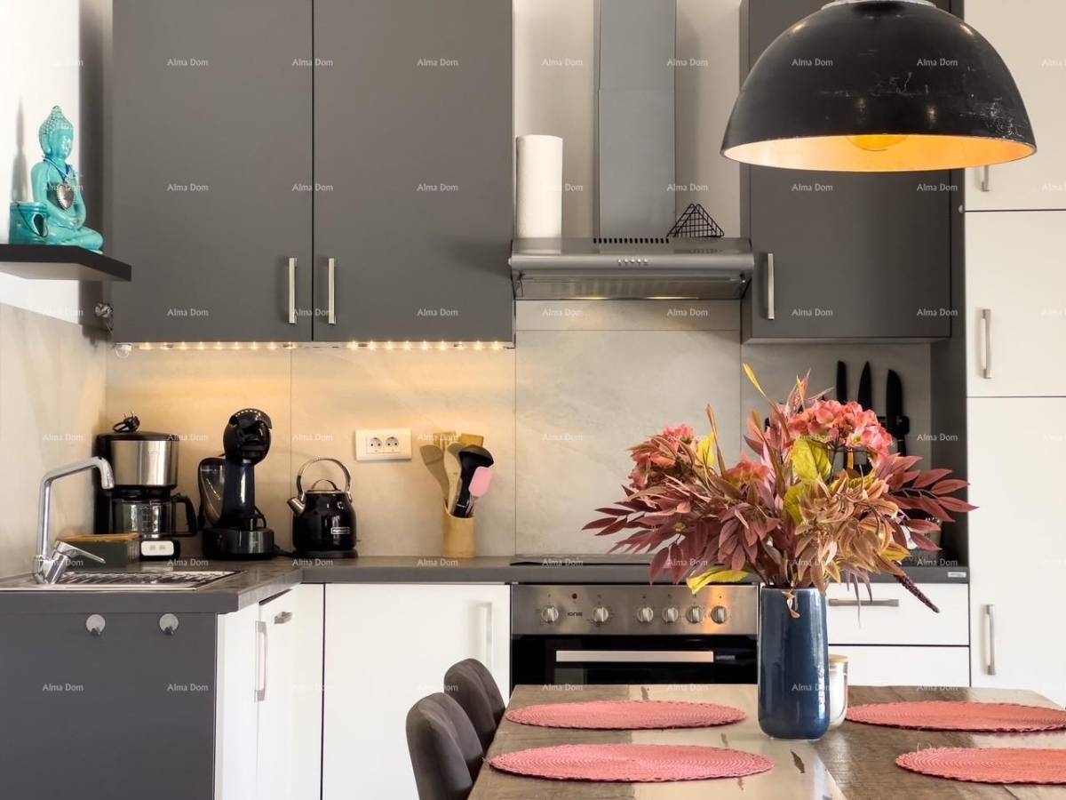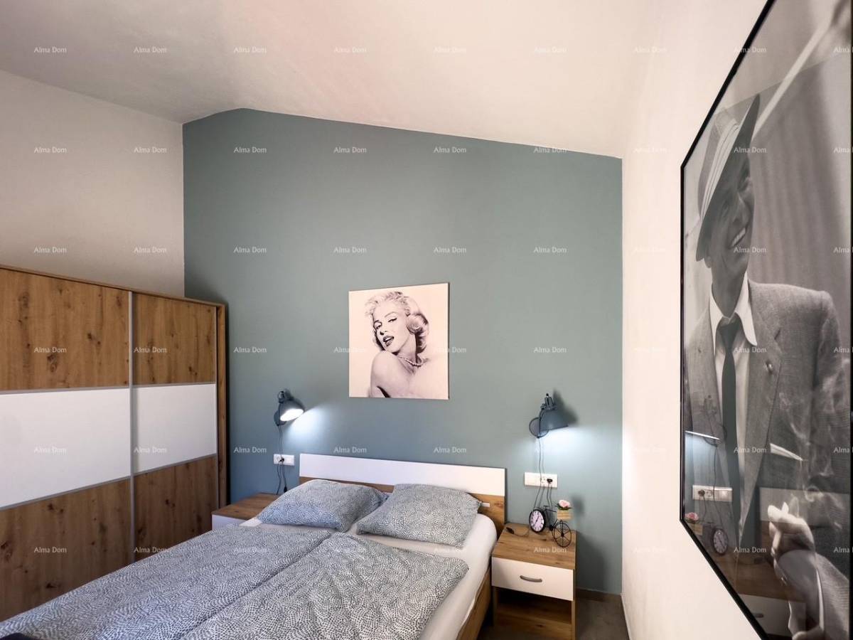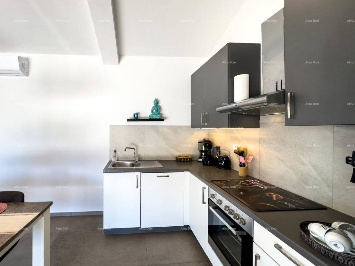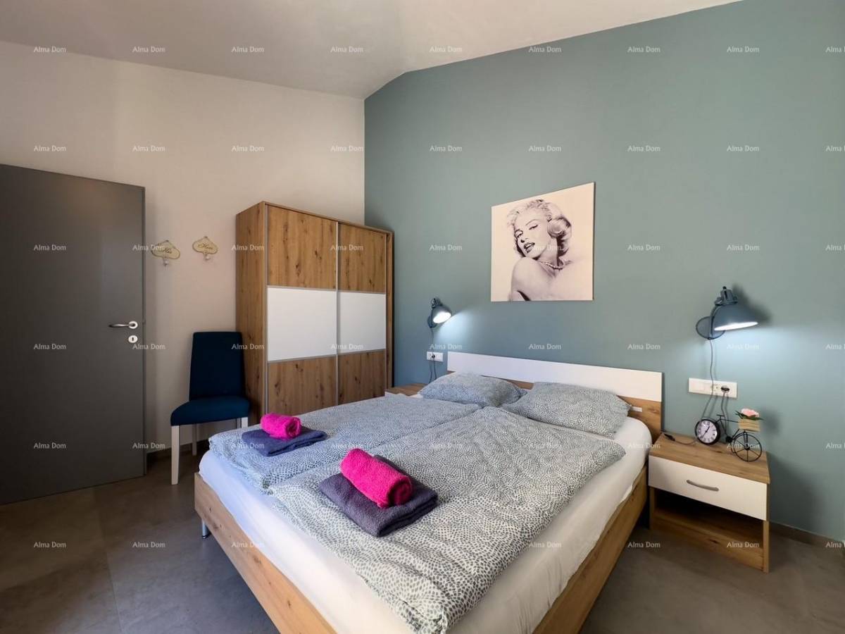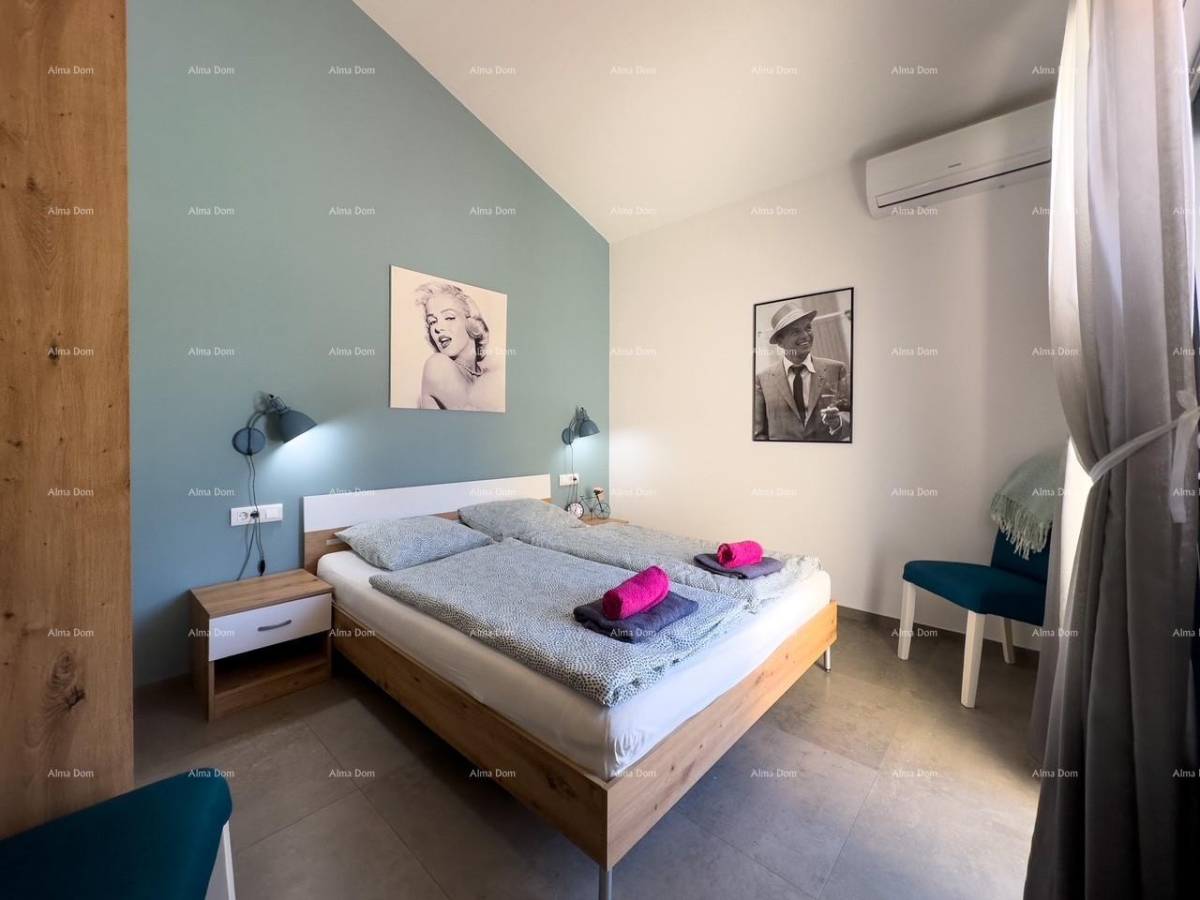 Manja kuća (84m2) sastoji se od dvije spavaće sobe, kupatila, toaleta, kuhinje, blagovaonice i dnevnog boravka iz kog se izlazi na vrt i bazen.