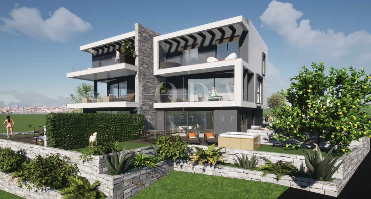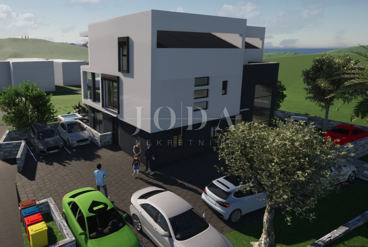 Apartman površine 109,63 m2 proteže se na prvi i drugi kat. Na prvom katu se nalaze dnevni boravak, kuhinja s blagovaonicom, WC, hodnik i natkrivena terasa površine 6,64 m2 Stubištem se dolazi do drugog kata gdje se nalaze tri spavaće sobe, dvije kupaonice, hodnik i balkon. Sustav grijanja i hlađenja pomoću dizalica topline, a ugrađeno je i podno grijanje.. Pri gradnji su korišteni i ugrađeni visoko kvalitetni materijali. Na raspolaganju su dva parkirna mjesta.