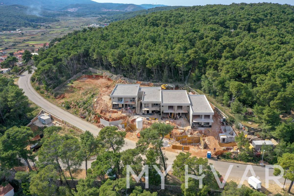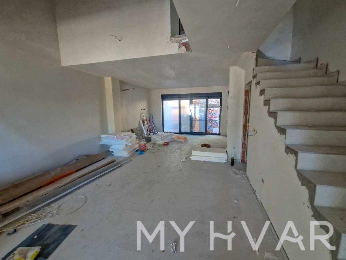 Otkrijte ovaj izuzetan moderan dvoetažni stan na traženoj lokaciji Jelse, Burkovo, s prekrasnim pogledom na otvoreno more koji oduzima dah. Nekretnina ima ukupnu površinu od 289,3 m², uključujući 123,1 m² zatvorenog stambenog prostora, 69,9 m² terasa i balkona, 83,8 m² vrta i 12,5 m² parkirnog mjesta. Stvarna korisna površina je izdašnih 152 m².