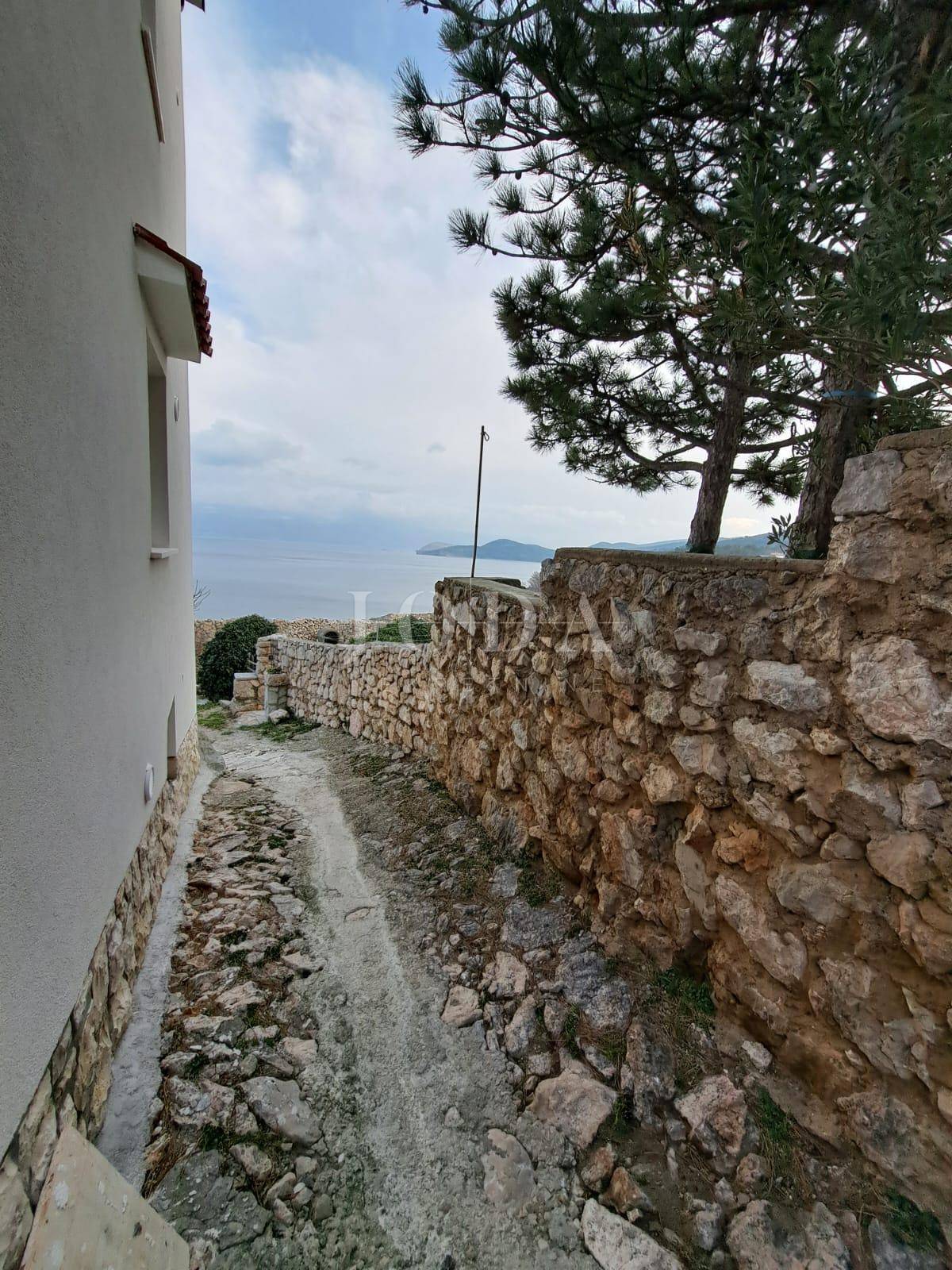 Kuća se nalazi u starom dijelu grada Vrbnika s prekrasnim pogledom na more sa svih etaža, udaljenosti cca 300 metara od mora i pristupa vozilom. Sastoji se od podruma i tri etaže, stambene površine 200m2. U podrumskom dijelu se nalaze konoba i kupaona. Na prvoj etaži nalazi se ulazni hodnik, kuhinja s blagovaonom i dnevnim boravkom, mala kupaona i spavaća soba. Unutarnje stepenice vode na drugu etažu gdje se nalaze dvije spavaće sobe i mala terasa. Na trećoj etaži nalazi se jedna prostrana soba s