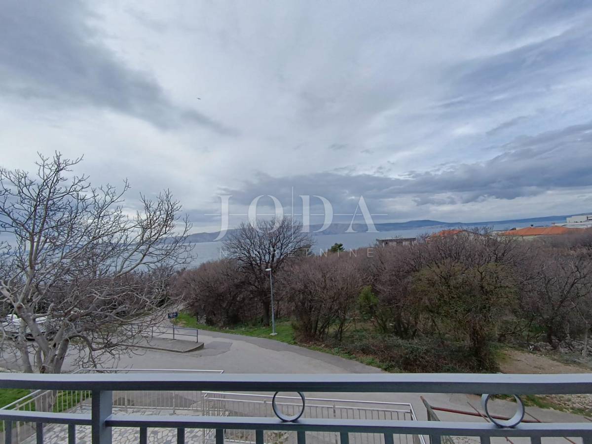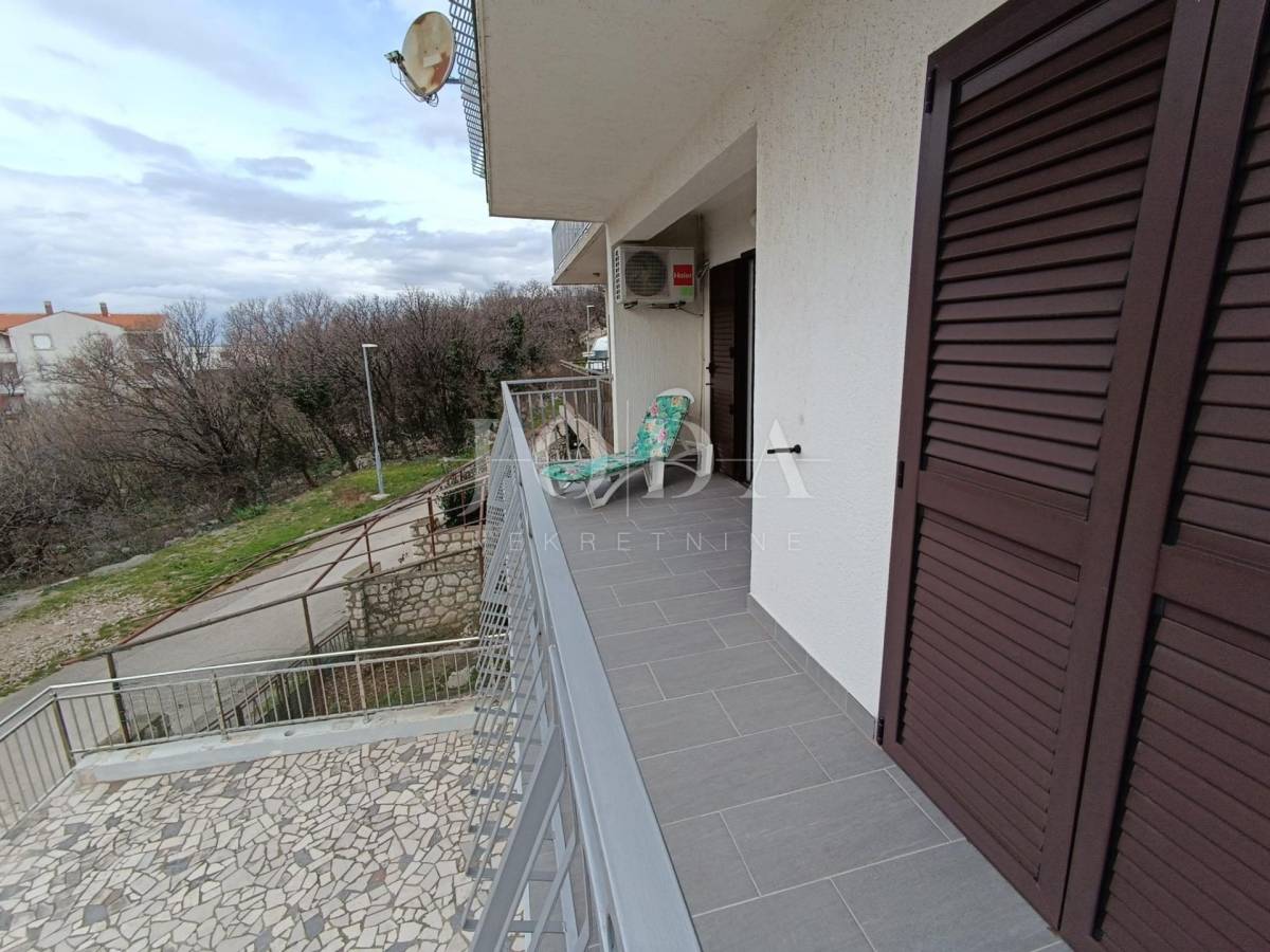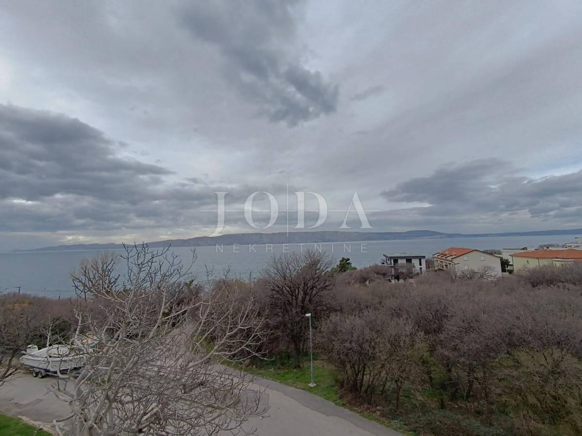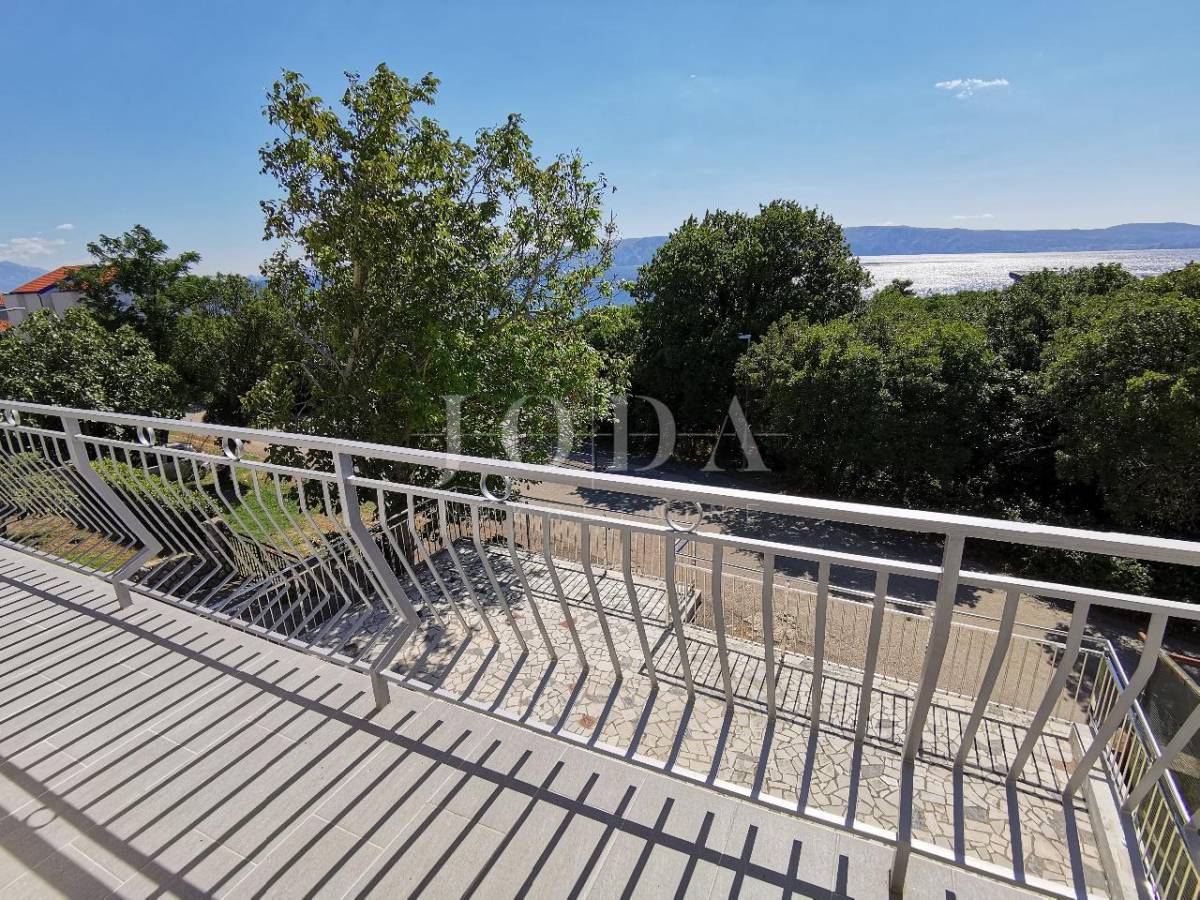 2. kat: Stan na prvom katu sa 82,54 m2 neto sastoji se od dvije spavaće sobe, kupaonice, kuhinje i dnevnog boravka (open space) te velike terase sa predivnim pogledom na more i otok Krk. Stan je klimatiziran.