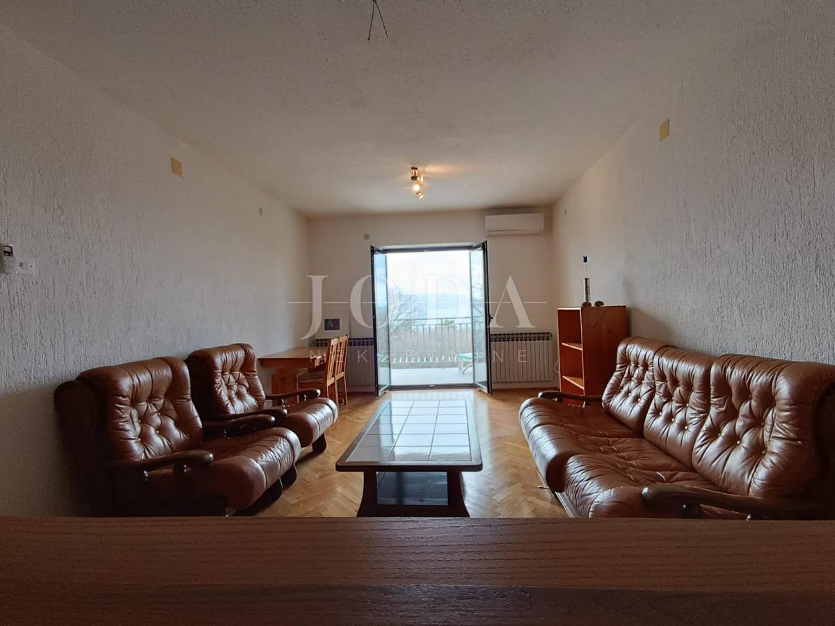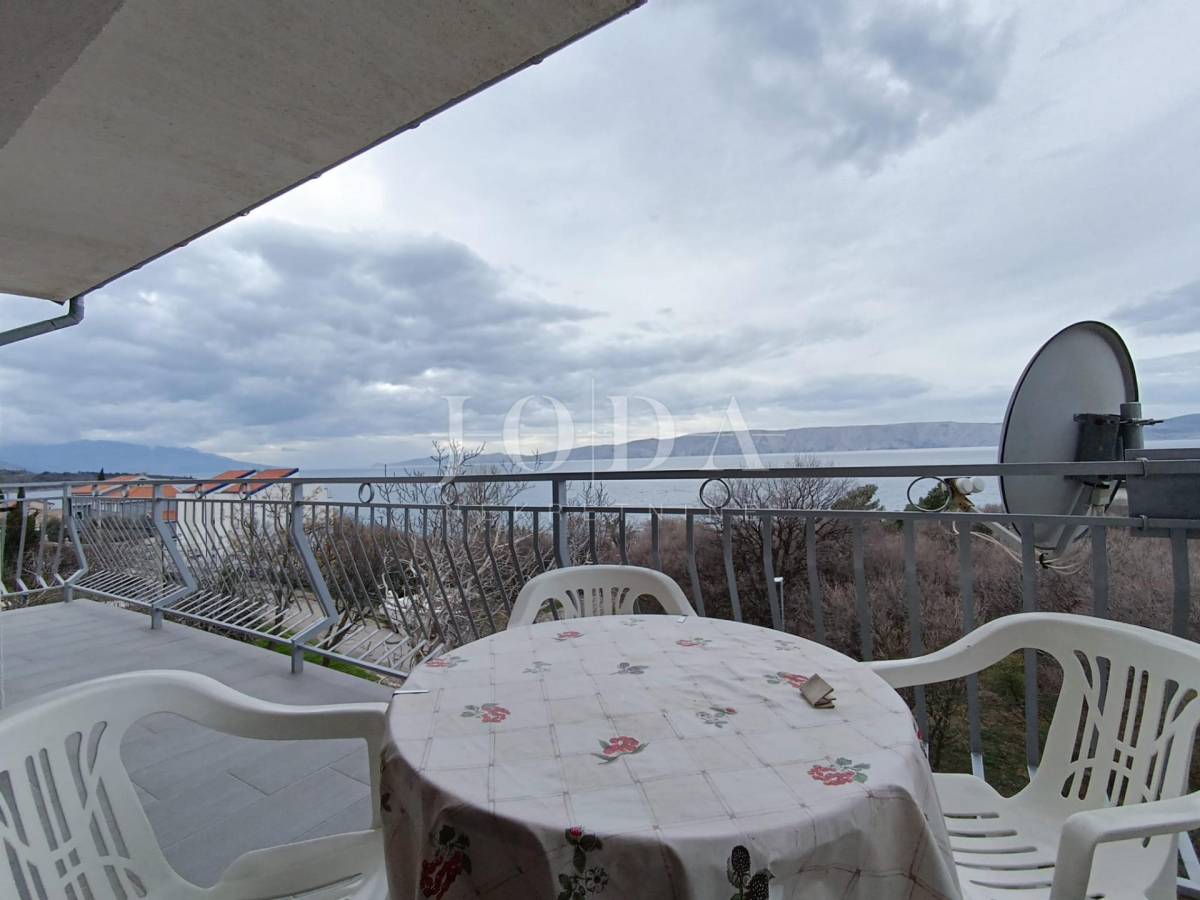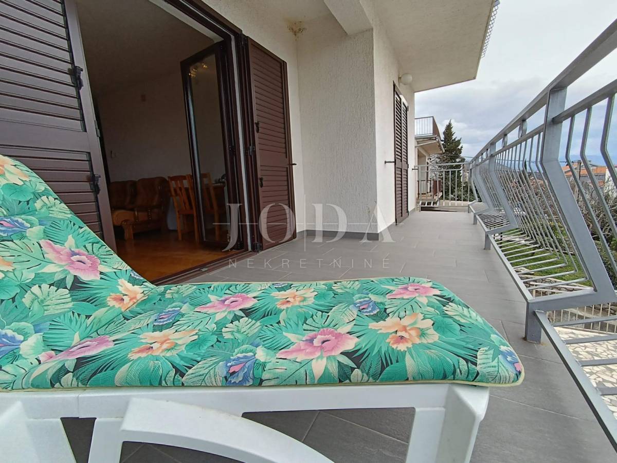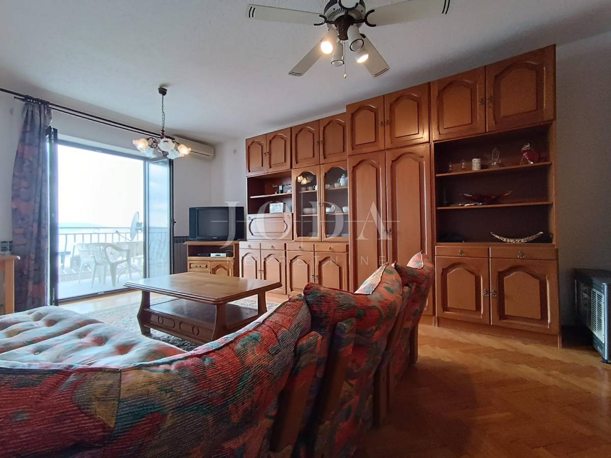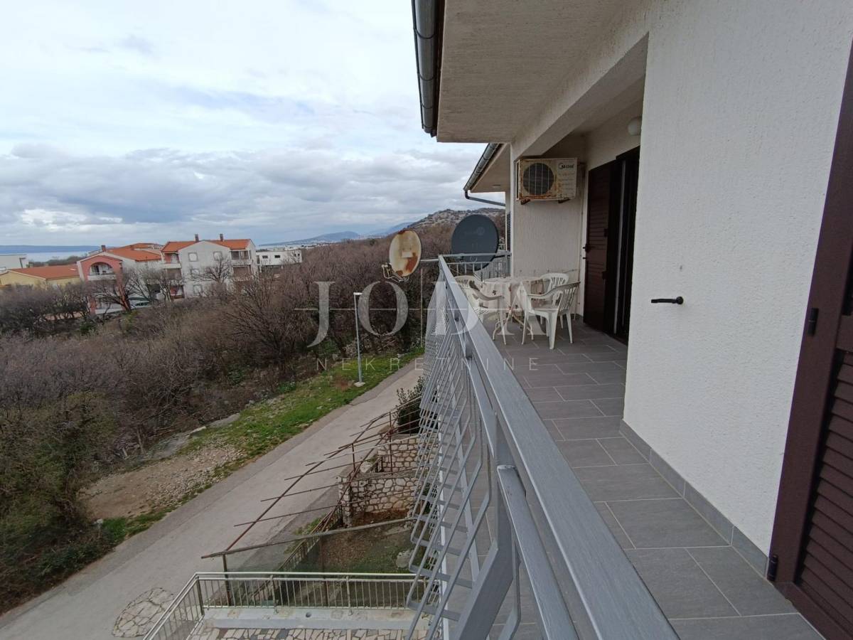 2. kat: Stan na prvom katu sa 82,54 m2 neto sastoji se od dvije spavaće sobe, kupaonice, kuhinje i dnevnog boravka (open space) te velike terase sa predivnim pogledom na more i otok Krk. Stan je klimatiziran.