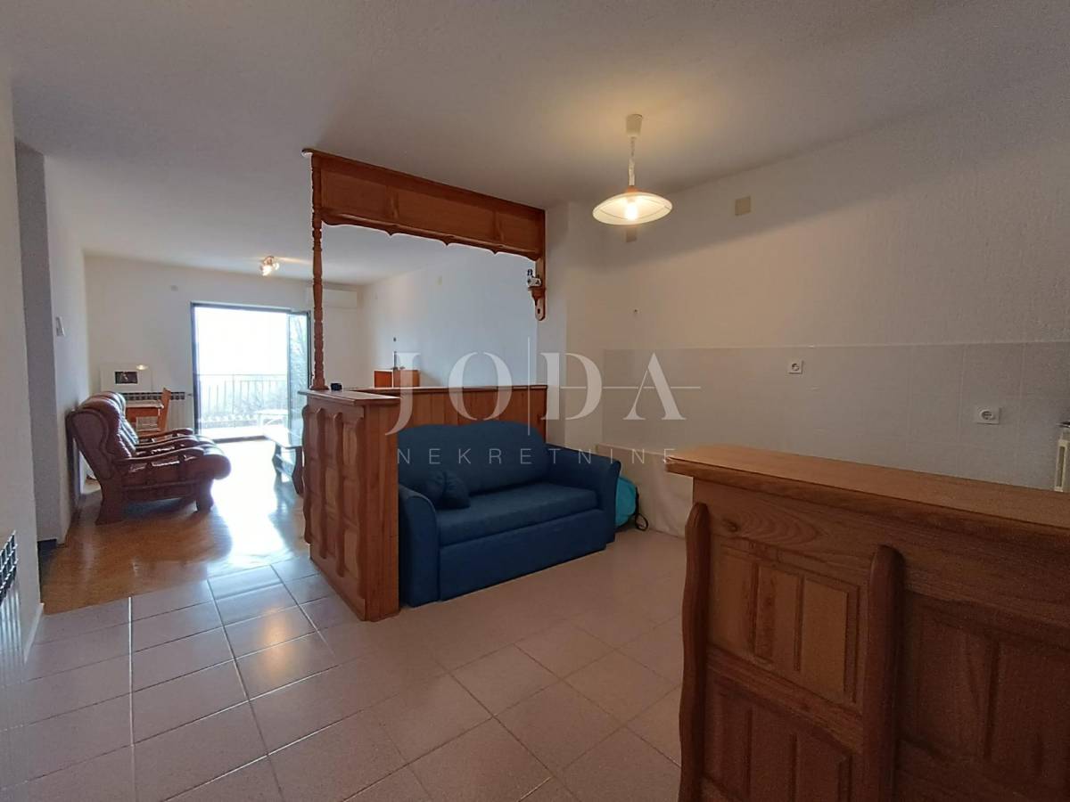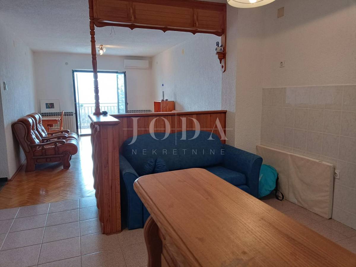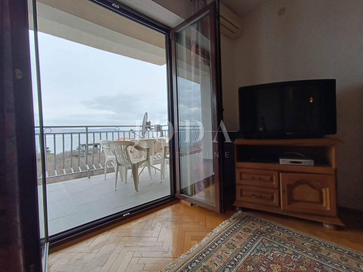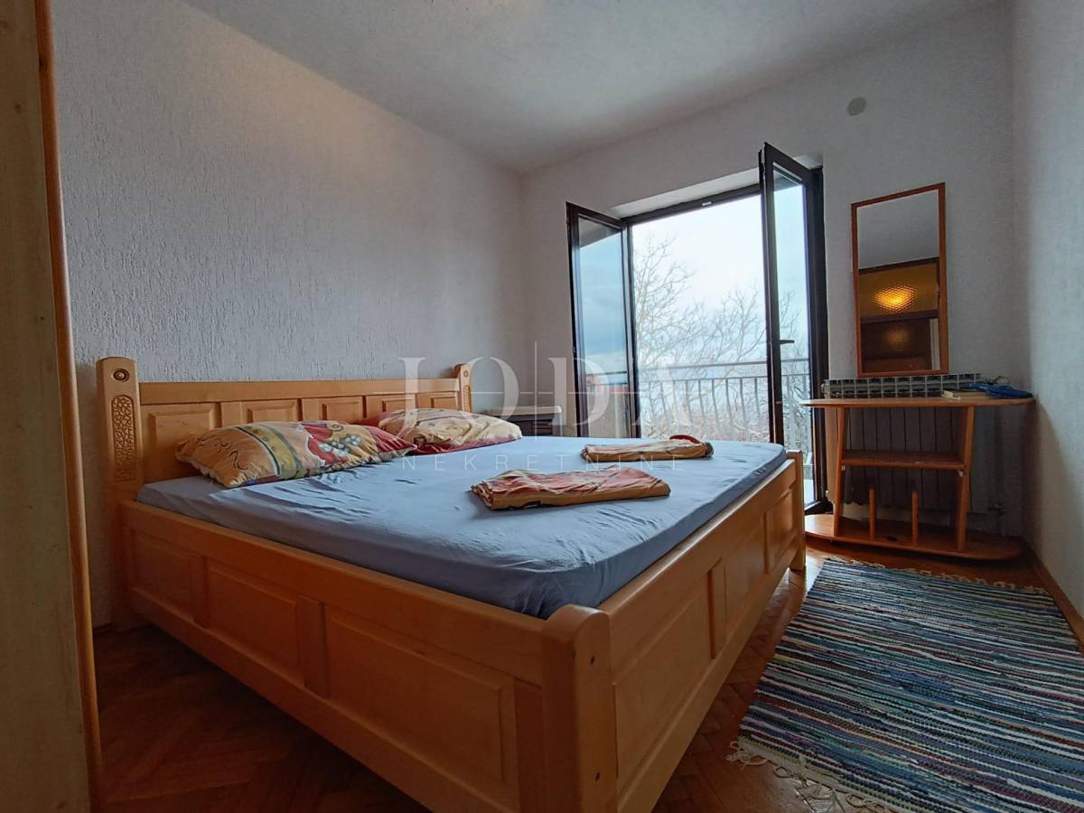 2. kat: Stan na prvom katu sa 82,54 m2 neto sastoji se od dvije spavaće sobe, kupaonice, kuhinje i dnevnog boravka (open space) te velike terase sa predivnim pogledom na more i otok Krk. Stan je klimatiziran.