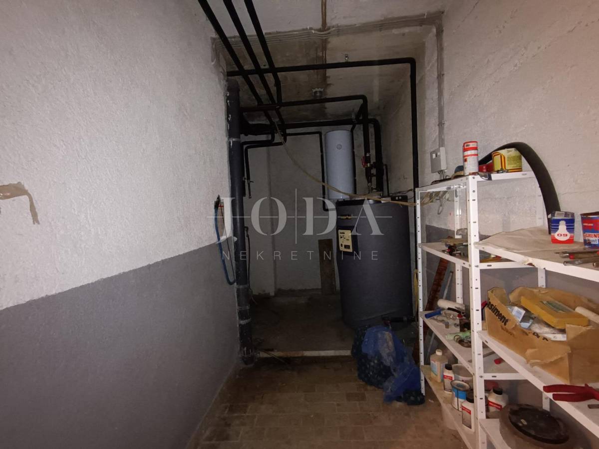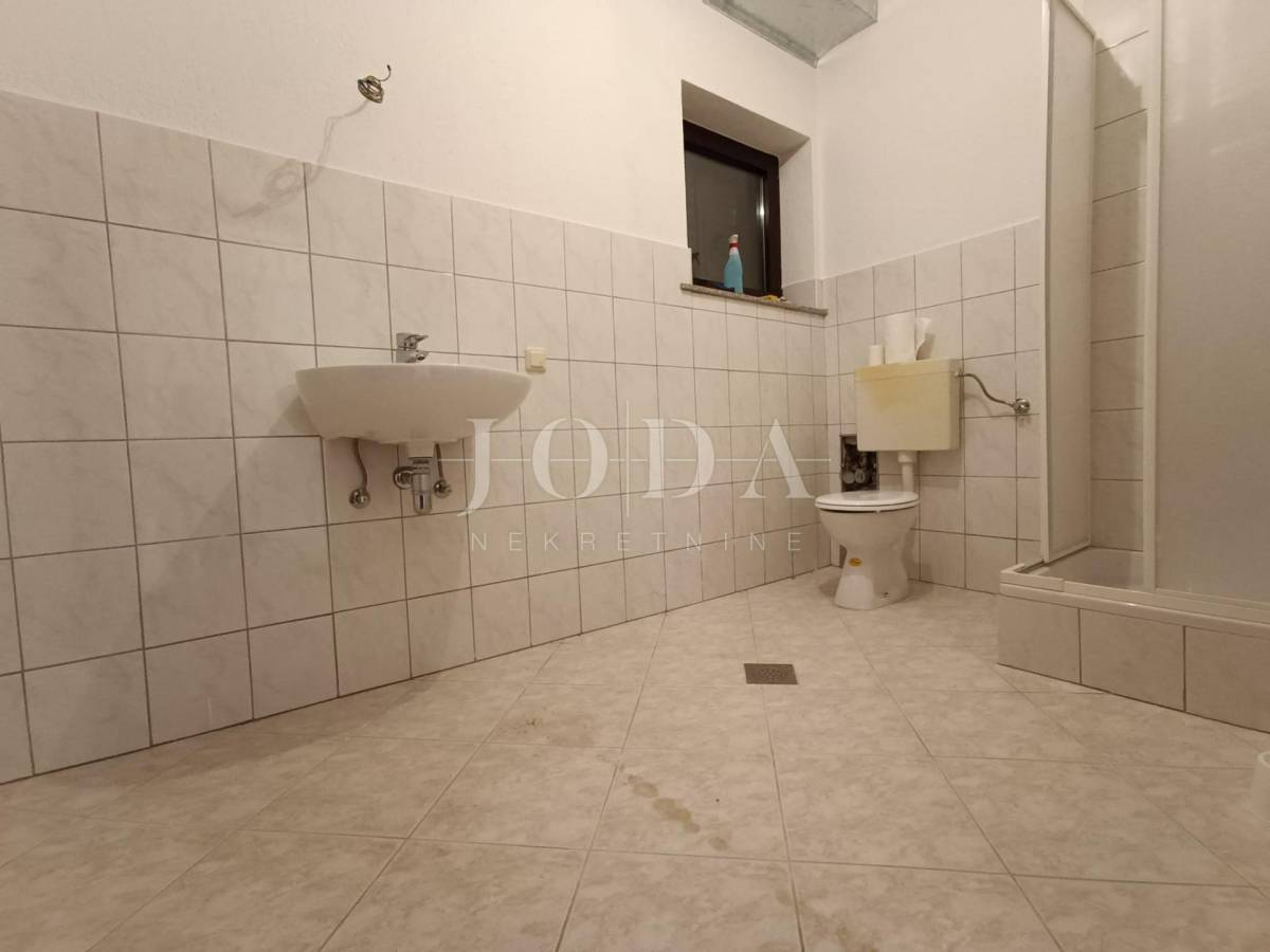 Donji stan sa 93,85 m2 neto ima veliku terasu od 48 m2, poseban ulaz sa glavne ulice i registriran je kao poslovni prostor. Idealan je za restoran, kafić ili trgovinu, a može se koristiti i kao stan.