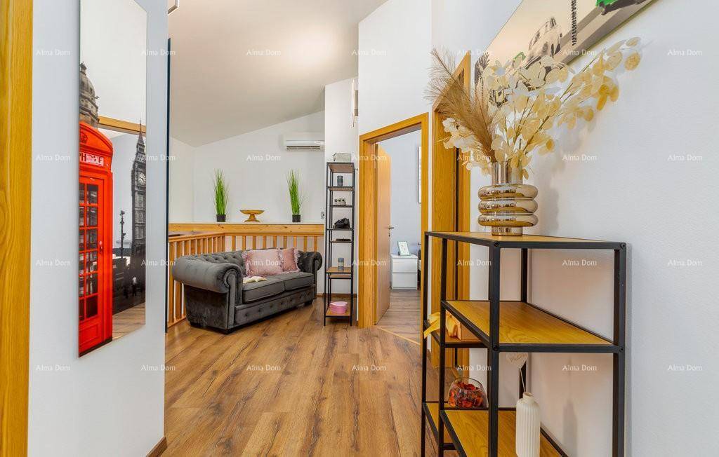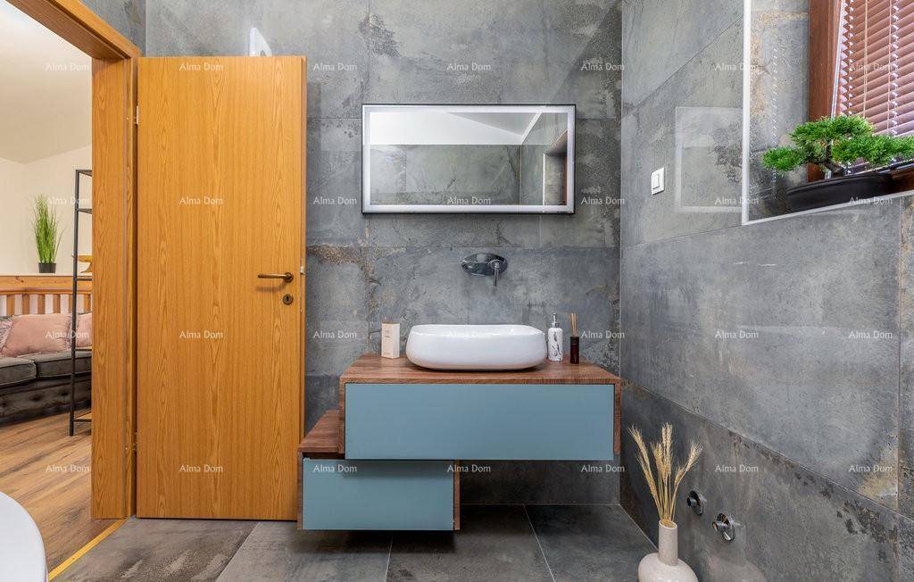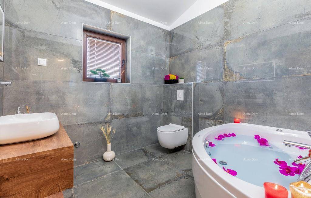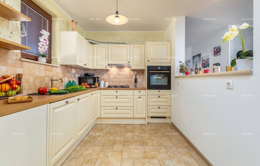 Sama kuća se sastoji od prostranog dnevnog boravka i kuhinje, tri moderno opremljene spavaće sobe, dvije kupaone.