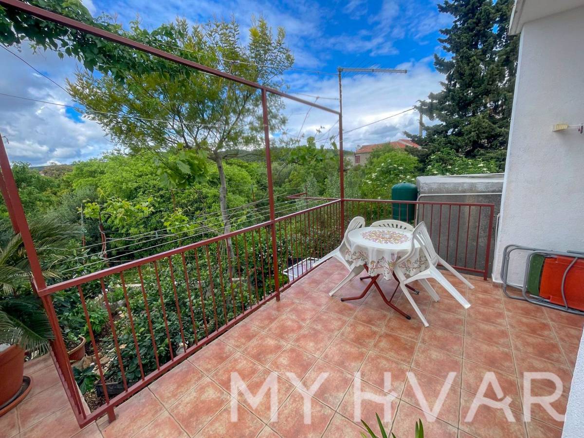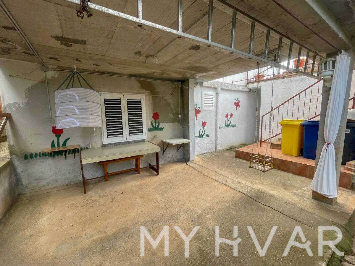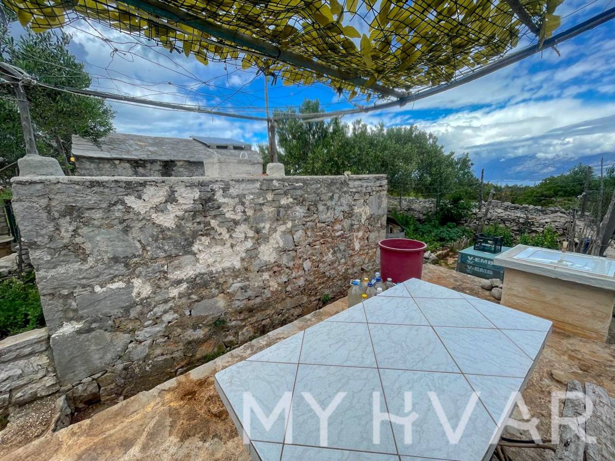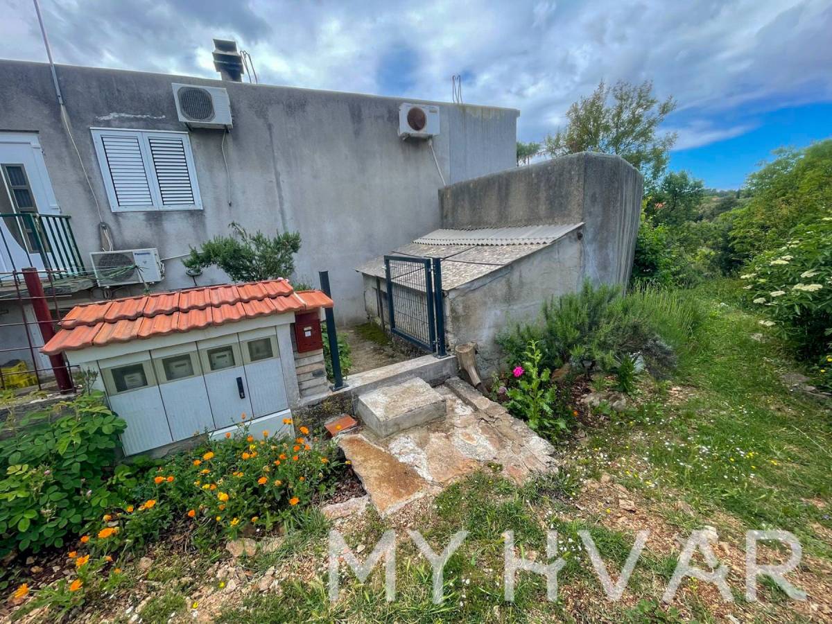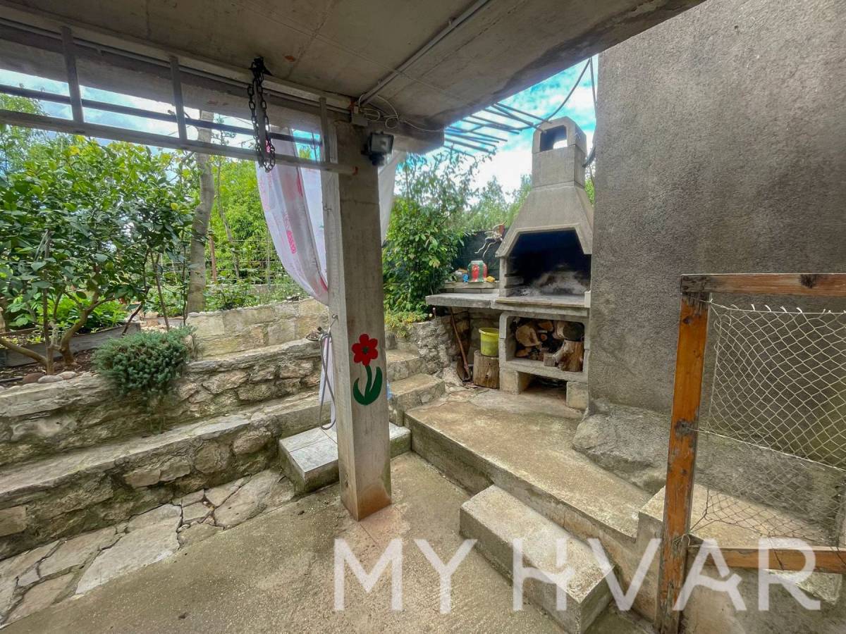 U mjestu Bogomolje na otoku Hvaru nalazi se dvojna kuća s ukupnom površinom prizemlja od 40 m². U prizemlju se nalaze kupaonica, kuhinja i spavaća soba, što čini prostor funkcionalnim i ugodnim za svakodnevni boravak. Izvana se izlazi na prostranu terasu od oko 20 m², kao i na balkon površine približno 15 m², što omogućuje uživanje na otvorenom i dodatni prostor za opuštanje. Na prvom katu, kojem se pristupa preko vanjske terase, nalazi se soba za goste i još jedna kupaonica, što je idealno za smještaj prijatelja ili obitelji. U dvorištu kuće nalaze se ostava i kokošinjac, a vrt površine oko 50 m² pruža mogućnost uzgoja vlastitog povrća ili uređenja prema želji.