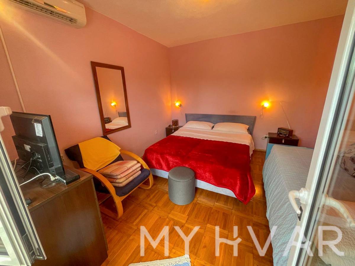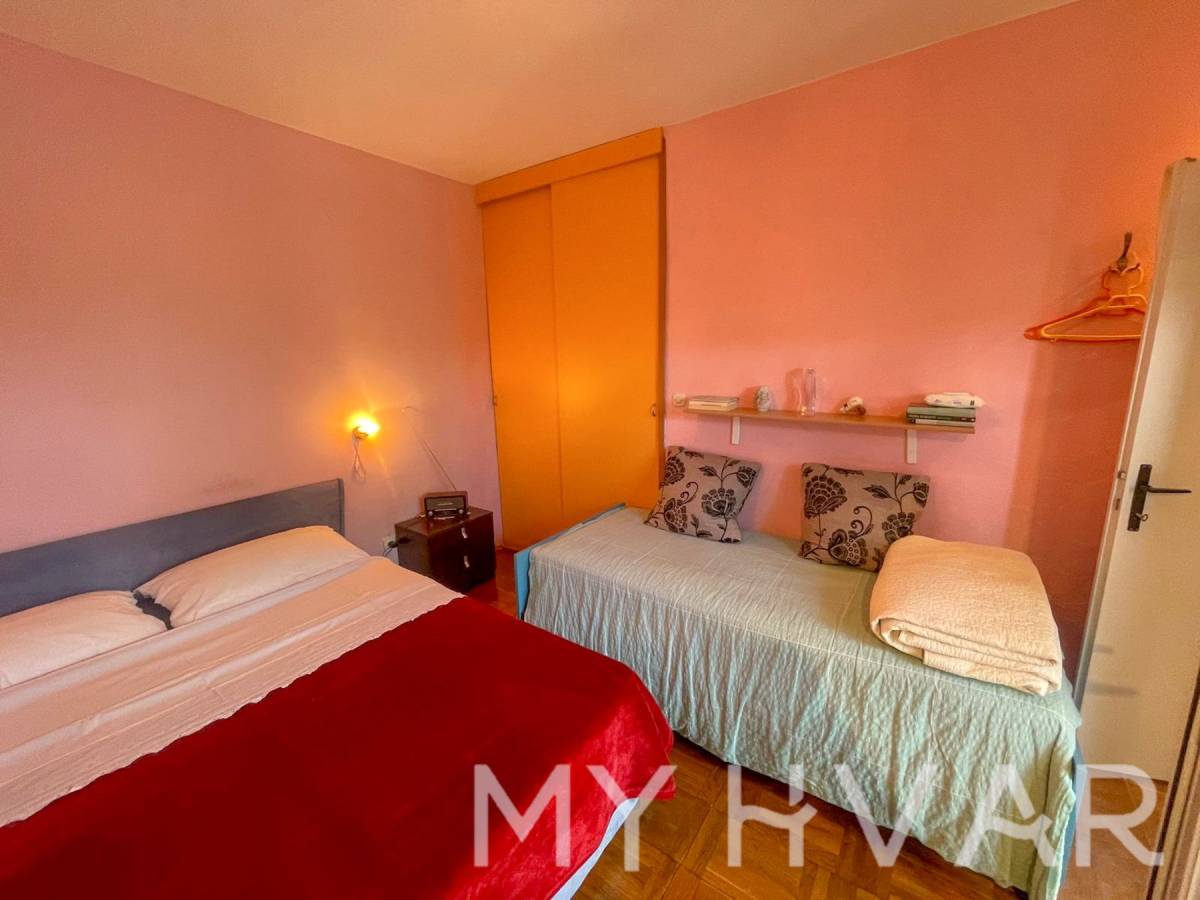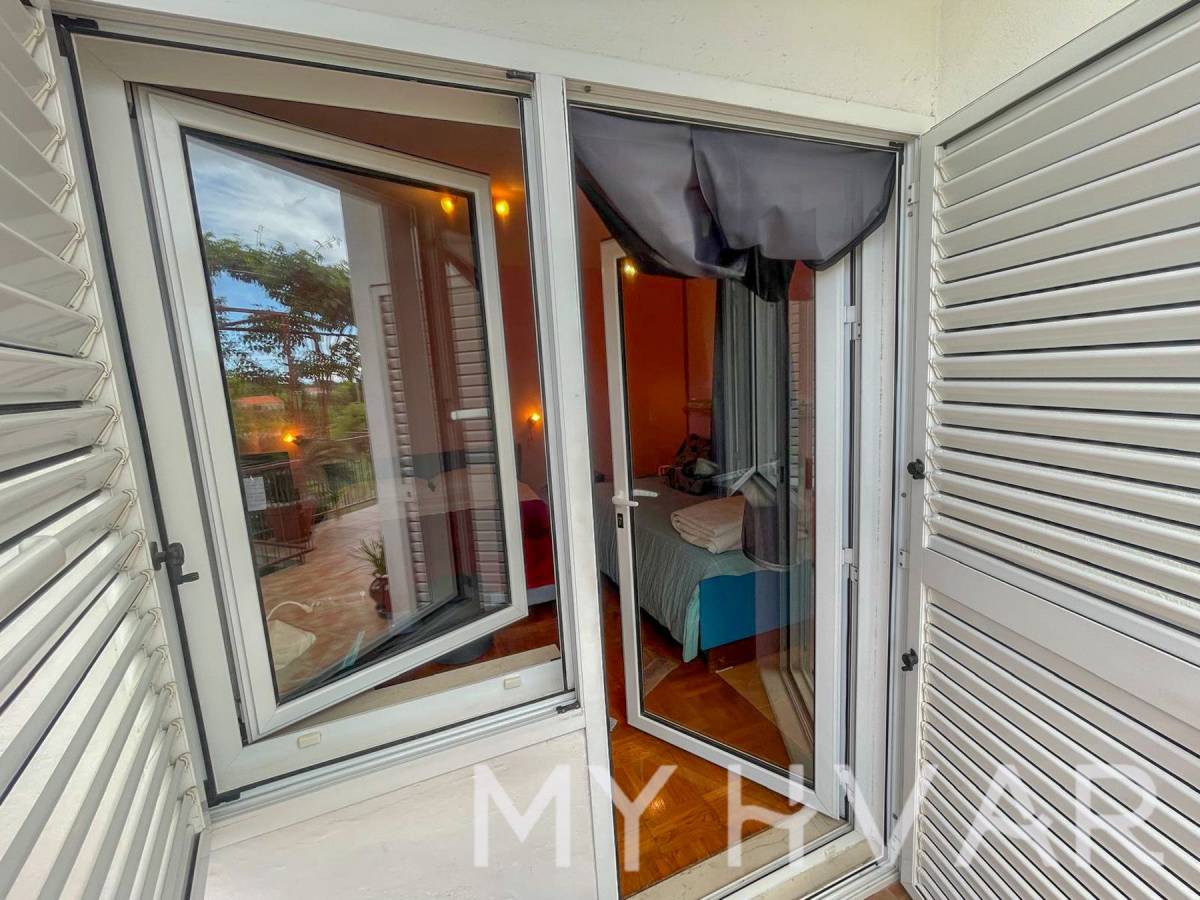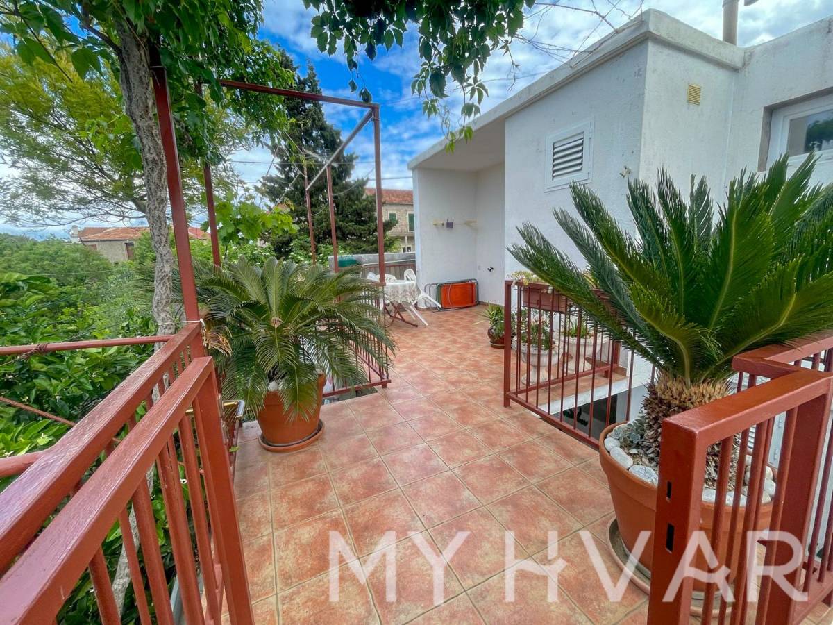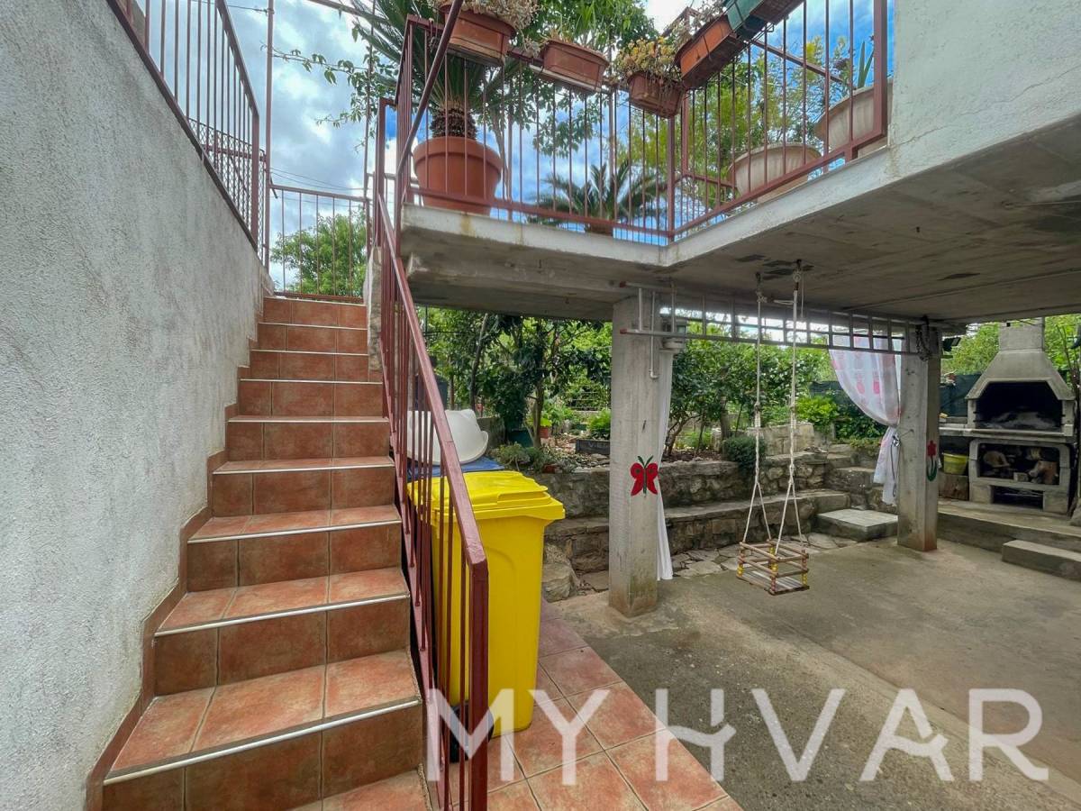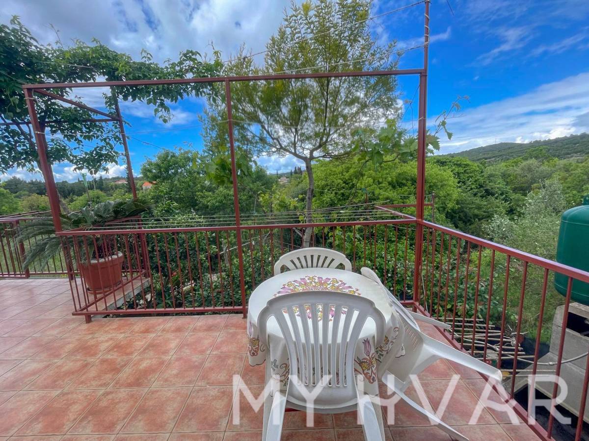 U mjestu Bogomolje na otoku Hvaru nalazi se dvojna kuća s ukupnom površinom prizemlja od 40 m². U prizemlju se nalaze kupaonica, kuhinja i spavaća soba, što čini prostor funkcionalnim i ugodnim za svakodnevni boravak. Izvana se izlazi na prostranu terasu od oko 20 m², kao i na balkon površine približno 15 m², što omogućuje uživanje na otvorenom i dodatni prostor za opuštanje. Na prvom katu, kojem se pristupa preko vanjske terase, nalazi se soba za goste i još jedna kupaonica, što je idealno za smještaj prijatelja ili obitelji. U dvorištu kuće nalaze se ostava i kokošinjac, a vrt površine oko 50 m² pruža mogućnost uzgoja vlastitog povrća ili uređenja prema želji.