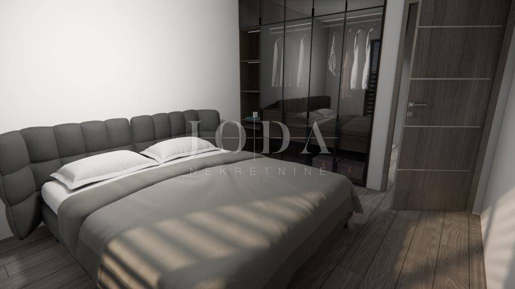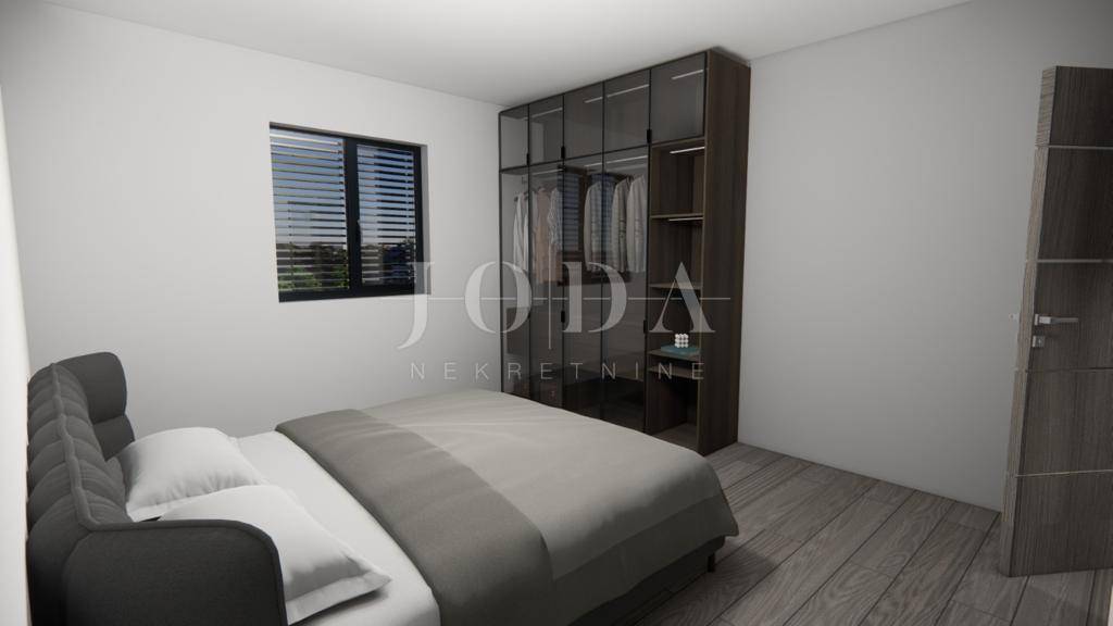 Kuće površine 135 m2 se proteže na prizemlje i kat. Prizemlje se sastoji od dnevnog boravka, kuhinje, blagovaonice, WC-a, hodnika i spremišta, a na prvom katu su tri spavaće sobe i dvije kupaonice. Na okućnici je planiran bazen i natkriveni vanjski roštilj. Na raspolaganju su tri parkirna mjesta.