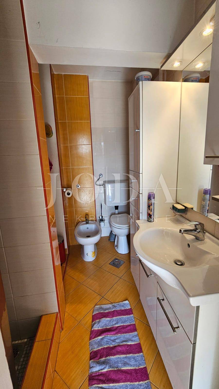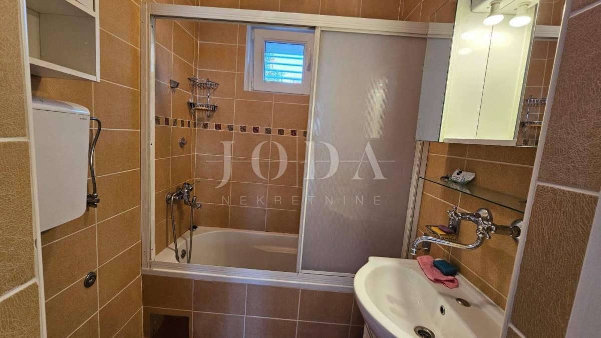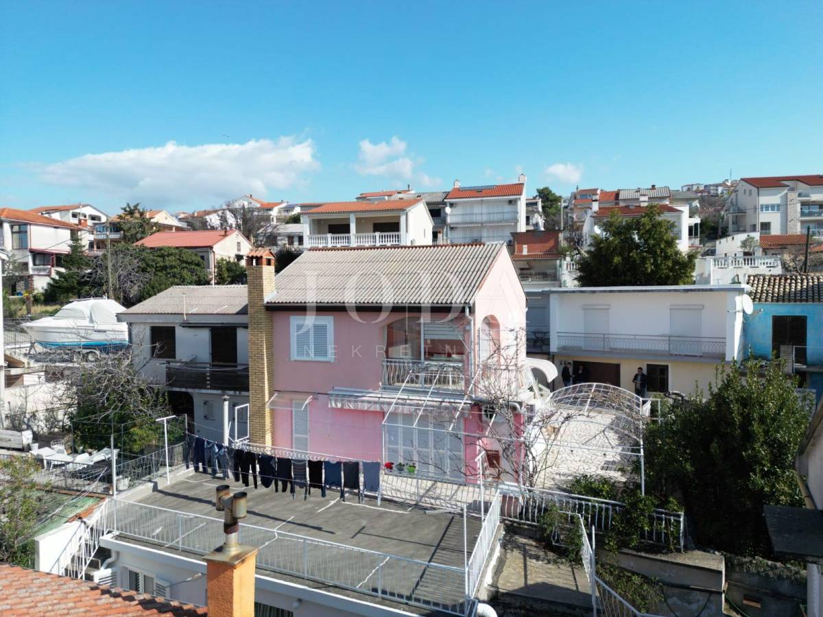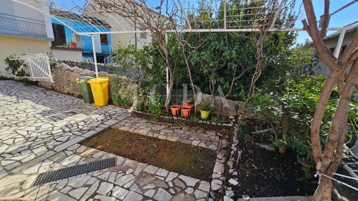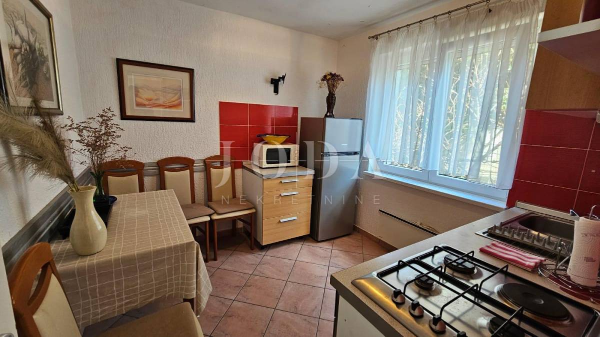 Prodajemo dvojnu kuću sa dvije odvojene jedinice. U prizemlju se nalazi manji klimatizirani apartman koji se sastoji od ulaznog hodnika, kupatila i velikog prostora gdje se smjestila spavaća soba i kuhina s blagovaonom (sa malim preinakama se može odvojiti u dvije zasebne prostorije). Iz blagovaonice (gdje se smjestila i velika kalijeva peć) se izlazi na lijepu terasu s pogledom na more.
