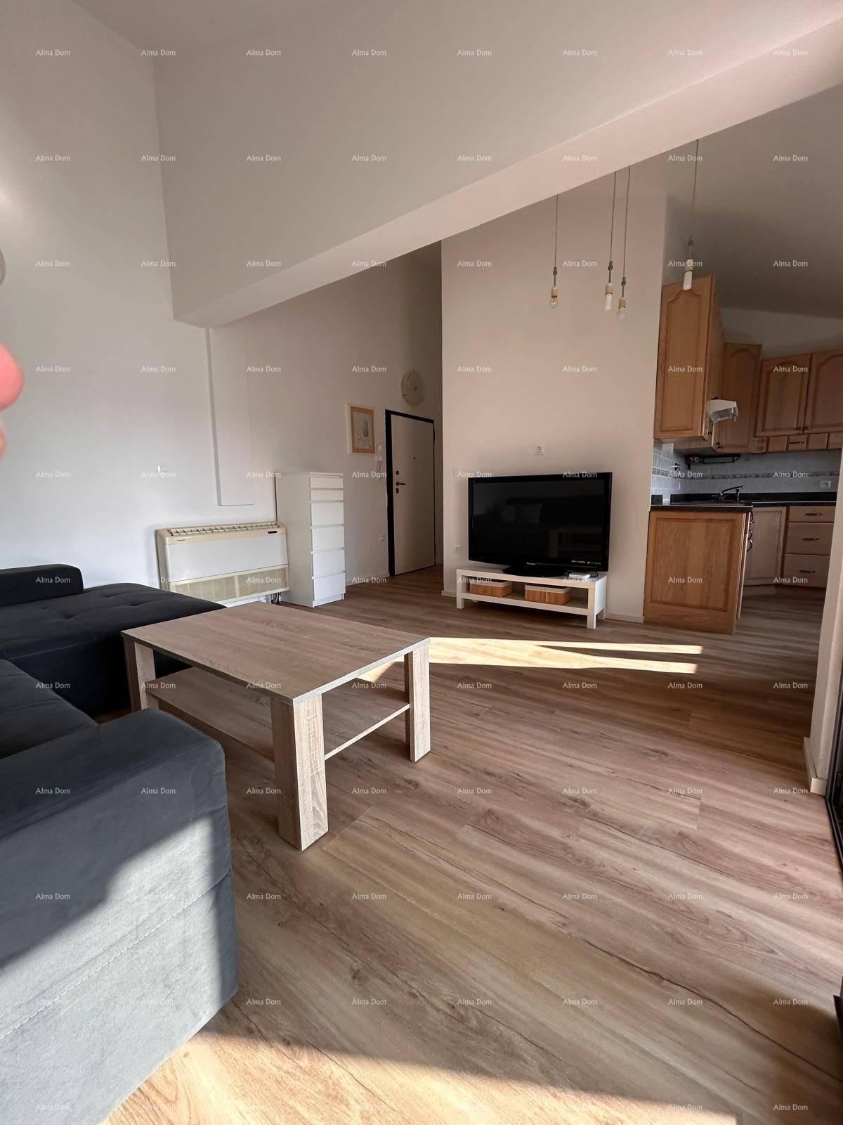 Stan je na drugom katu, potpuno renoviran i moderno namješten, sastoji od ulaznog prostora, dnevnog boravka s kuhinjom i izlazom na prostranu, kupaonice, i 2 spavaće sobe.