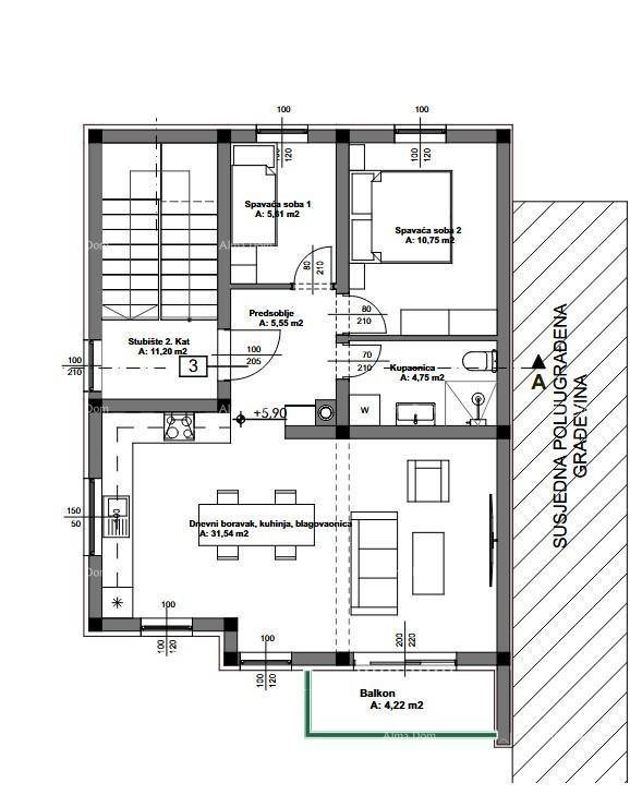 U prodaji stan u izgradnji koji se nalazi na 2. katu u zgradi s ukupno 3 stana te se prodaje samo gore navedeni stan.