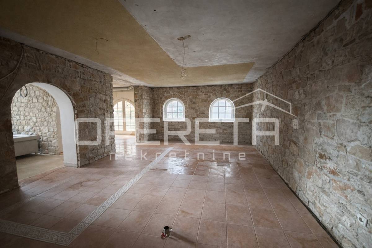Prizemlje objekta čini poslovni prostor površine cca 130 m² u visokom roh-bau stanju, koji je ranije funkcionirao kao poznati restoran. Prostor je već infrastrukturno pripremljen za ugostiteljsku djelatnost — uključuje ventilaciju za kuhinju, izvedene instalacije, mogućnost postavljanja profesionalne opreme, pripremu za ozvučenje, kao i krušnu peć. Raspored obuhvaća četiri veće prostorije, dva sanitarna čvora za goste, sanitarni prostor za osoblje te dodatnu ostavu.