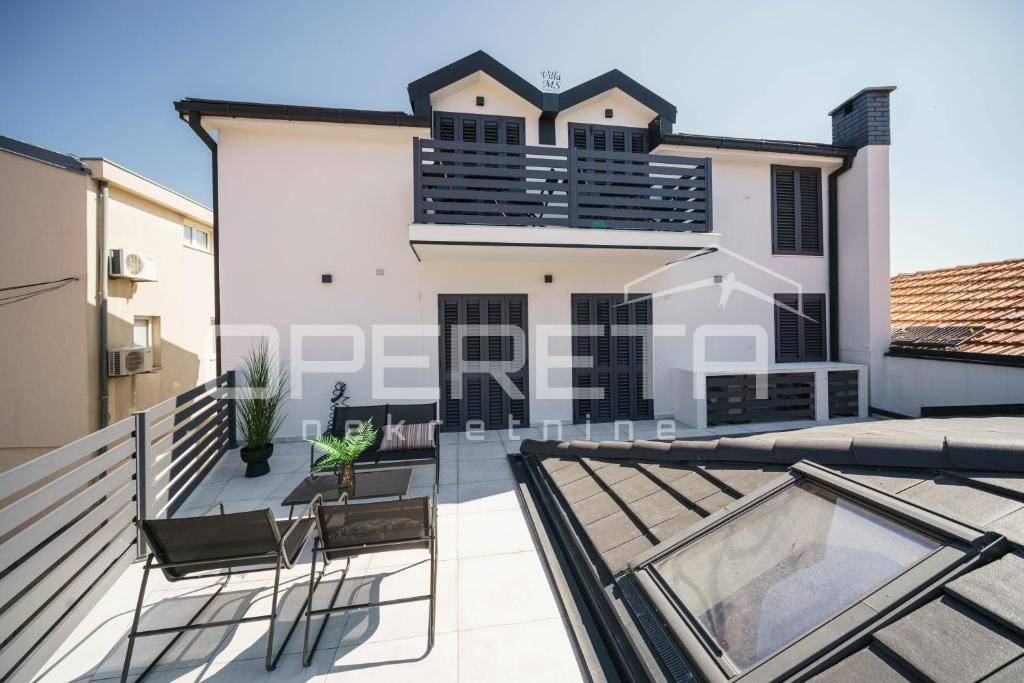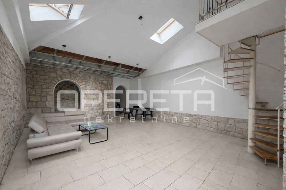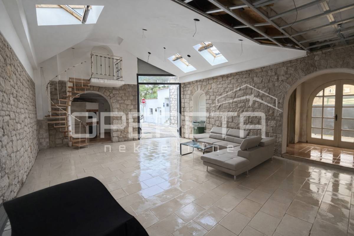 Ukupna površina objekta iznosi cca 350 m² bruto (cca 250 m² neto) i sastoji se od dva potpuno novouređena apartmana na gornjim etažama te velikog poslovnog prostora u prizemlju.