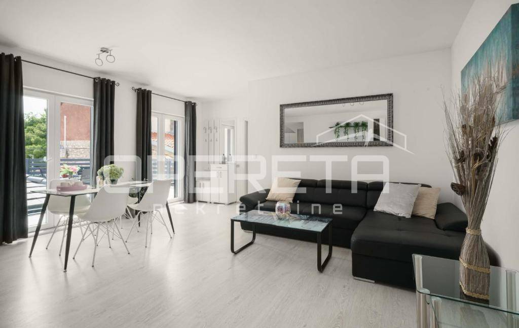 Apartmani su moderni, potpuno opremljeni i spremni za korištenje bez dodatnih ulaganja. Svaki ima vlastiti ulaz, terasu ili balkon s pogledom na more te funkcionalan raspored. Jedna jedinica je prilagođena za smještaj do dvije osobe uz pomoćni ležaj, dok druga omogućuje boravak do pet osoba uz dodatni ležaj, čime se pokriva širok raspon gostiju i povećava popunjenost tijekom sezone.