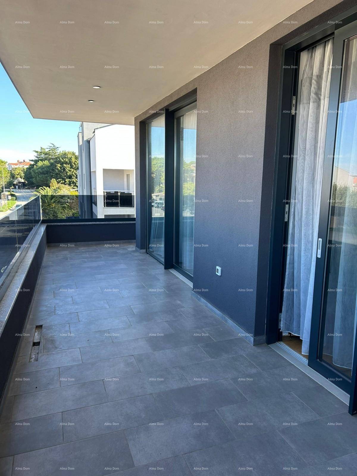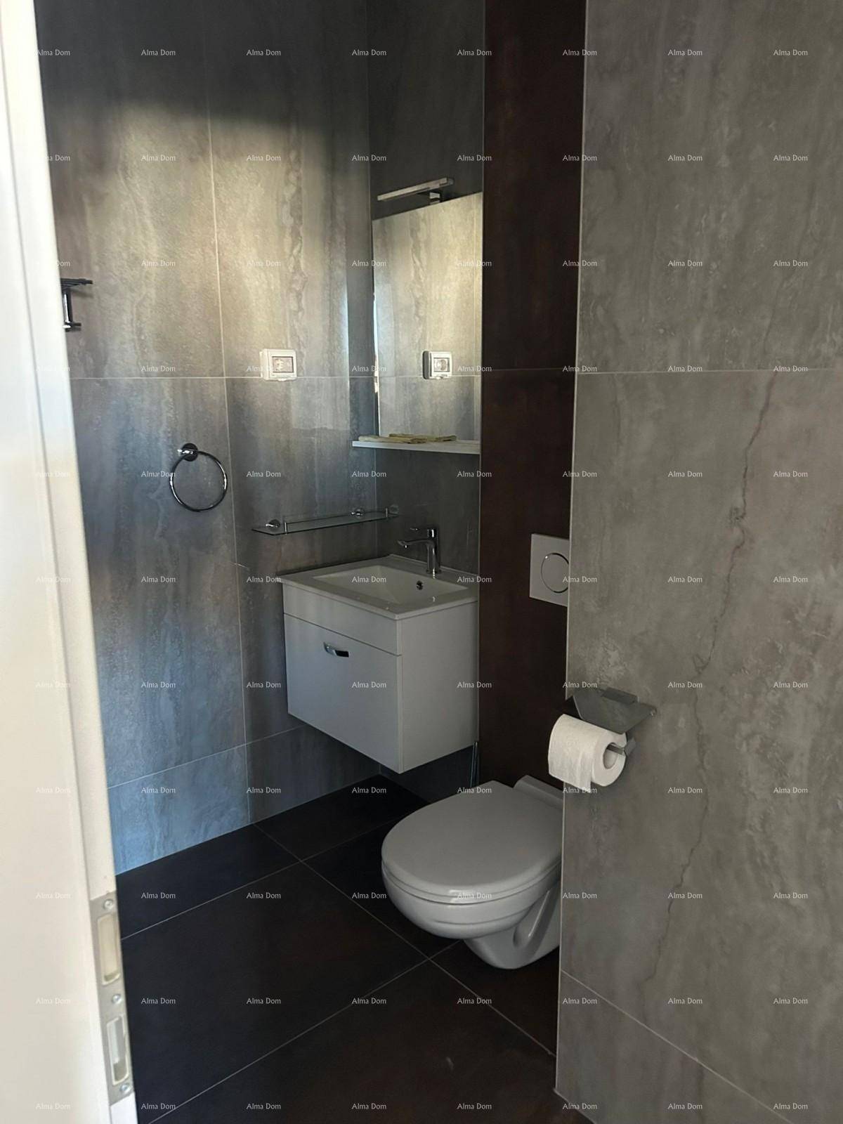 U ponudi je stan na 2. katu novogradnje. Sastoji se od ulaznog hodnika, kupaonice, dvije spavaće sobe svaka ima izlaz na terasu, kuhinje s blagavaonicom te dnevnim boravkom i terasom.