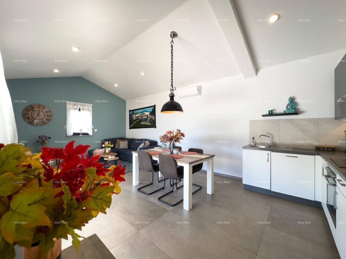 Veća kuća (120m2) sastoji se od tri spavaće sobe, jedna ima svoje kupatilo dok druge dvije dijele kupatilo. Kuhinja, blagovaonica i dnevni boravak iz kog se pruža pogled na Učku i zelenilo.