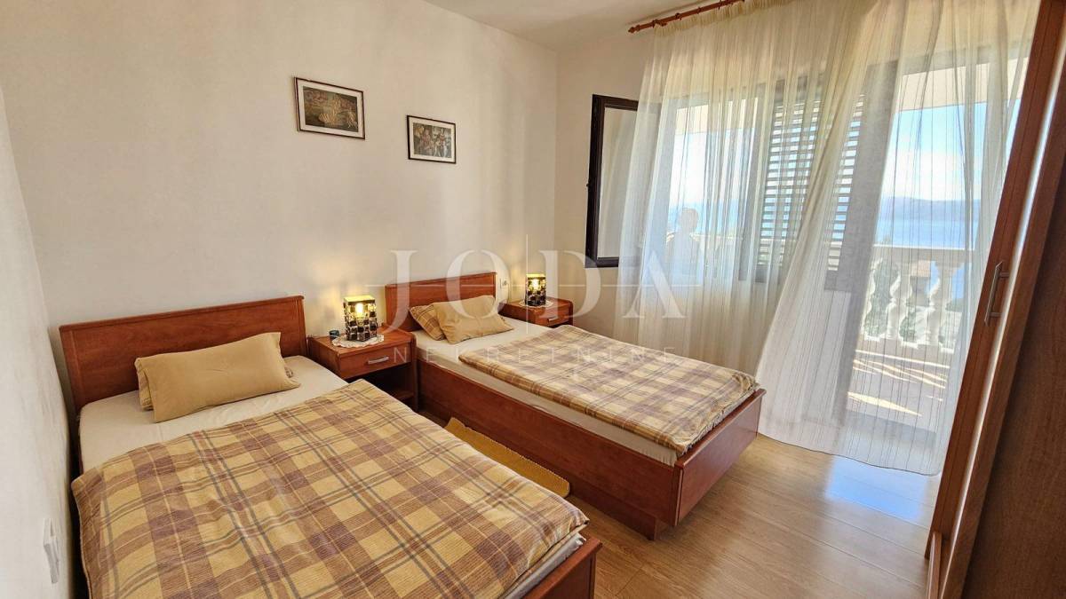 Drugi kat također ima terasu ispred glavnog ulaza, dvije spavaće sobe, kupaonicu, kuhinju, dnevni boravak i blagovaonicu te balkon s prekrasnim pogledom na more i otok Krk. Grijanje je na klimu.