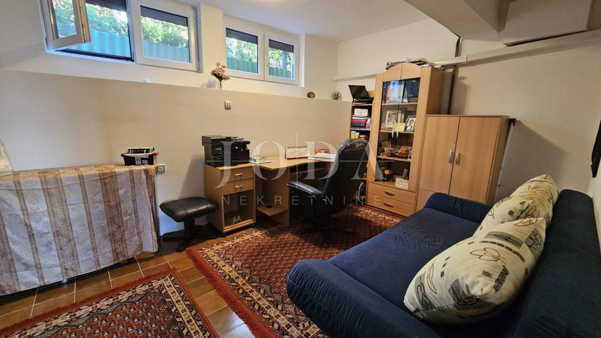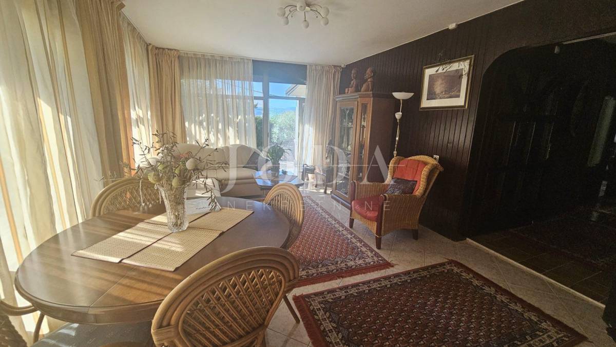 Prizemlje kuće sastoji se od tri spavaće sobe (jedna se koristi kao ured), dvije kupaonice, kuhinje i dnevnog boravka, te natkrivene terase sa pogledom na more. Ova jedinica je opremljena centralnim grijanjem i klima uređajem.