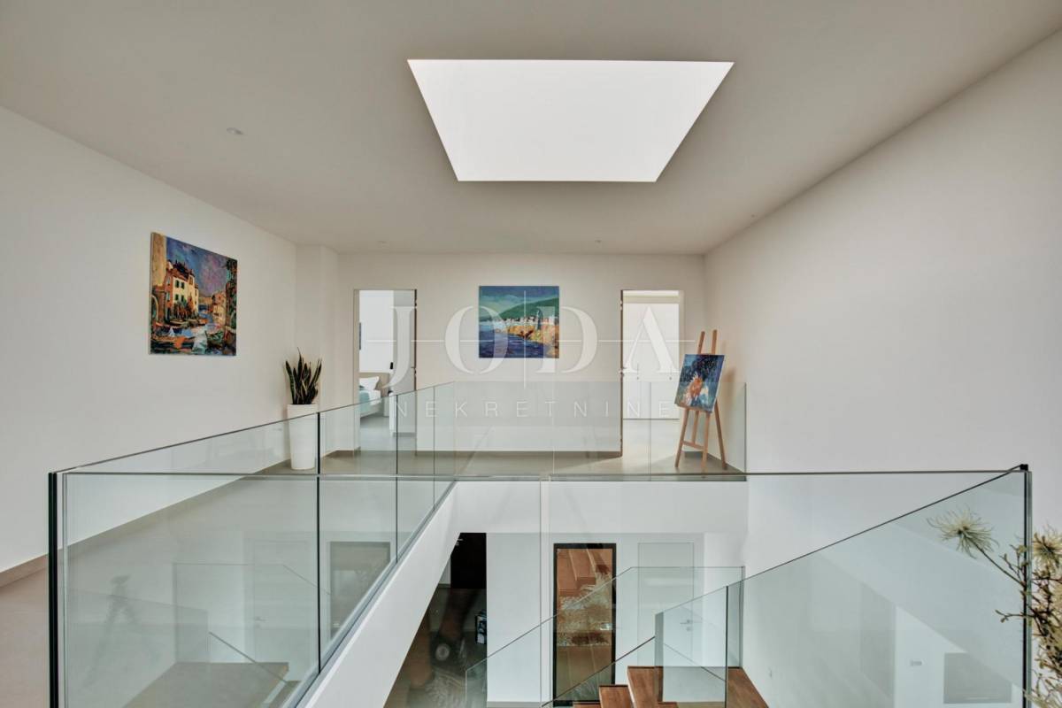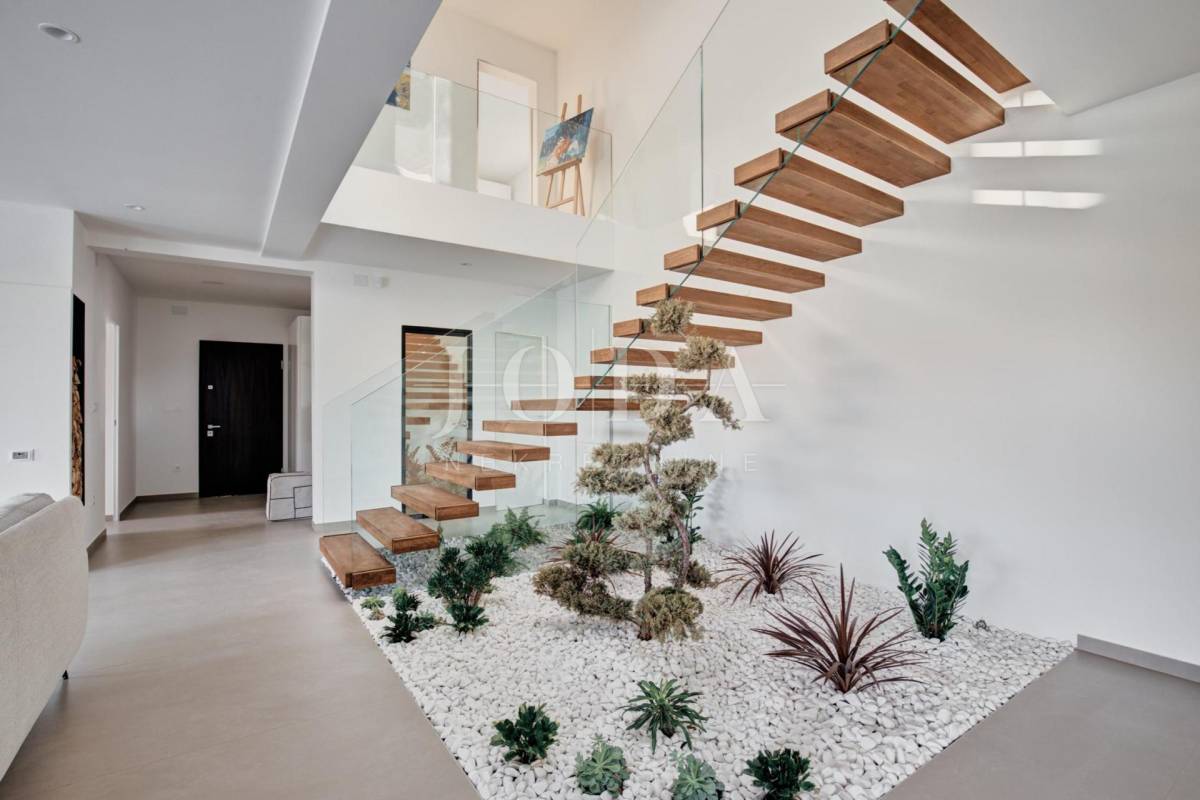 Villa ima površinu od 293 m2, prostranu okućnicu od 1244 m2 i sastoji se od dvije etaže. U prizemlju ville su dnevni boravak, kuhinja s blagovaonicom, kupaonica, igraonica, ostava i wellness prostorija. Na prvom katu se nalaze četiri spavaće soba s vlastitim kupaonicama i balkonima te praonica. Posebna pažnja se obratila na uređena interijera ove prekrasne nekretnine. Dvije etaže su spojene unutarnjim stepeništem koje je dizajnirano kao da "ledbi" te se ispor stepeništa nalazi uređena zelena površina. Vanjski vrt je uređen u mediteranskom stilu. Na okućnici se još smjestio i veliki bazen sa sunčalištem i prostor za druženje i opuštanje.