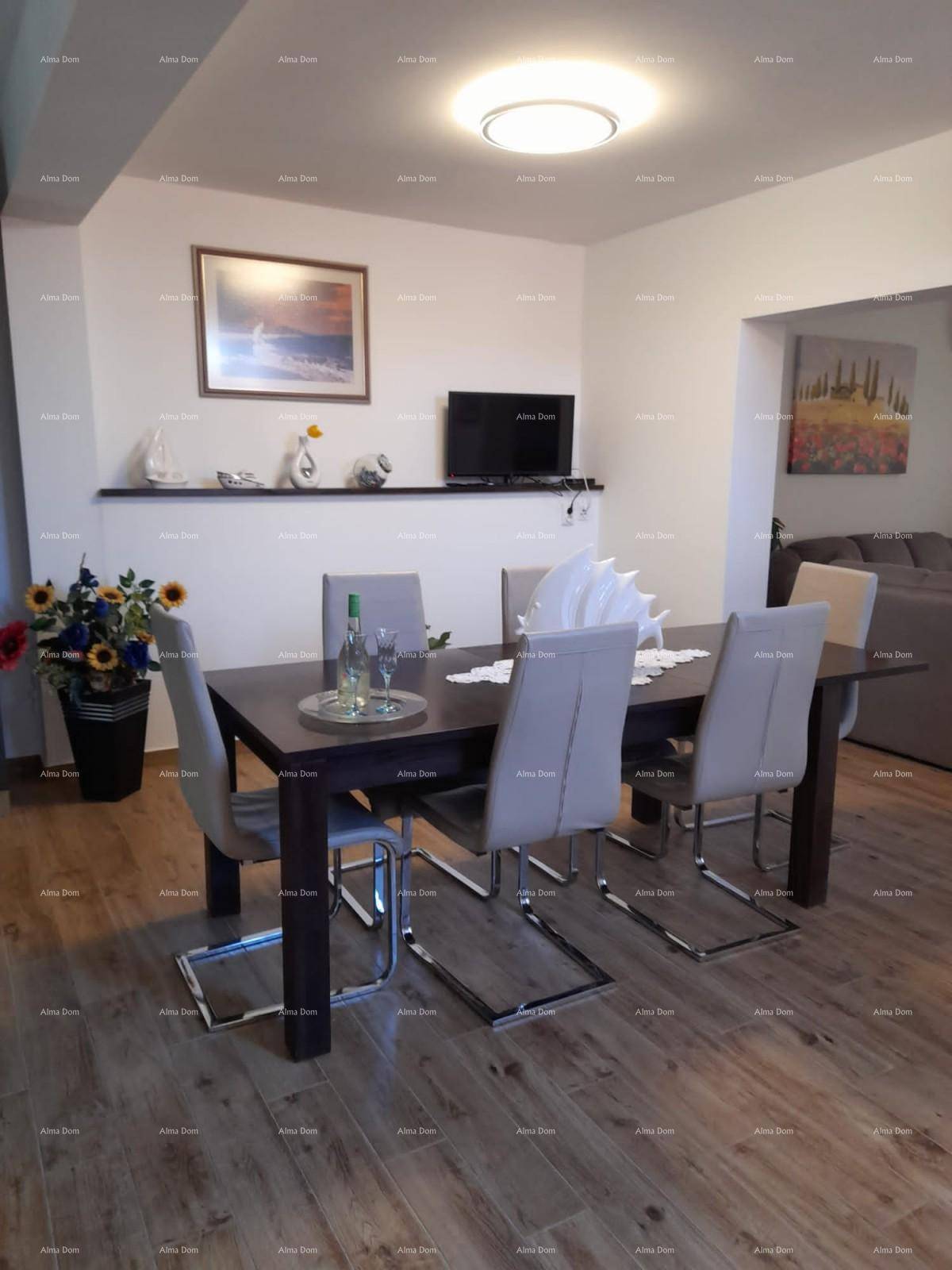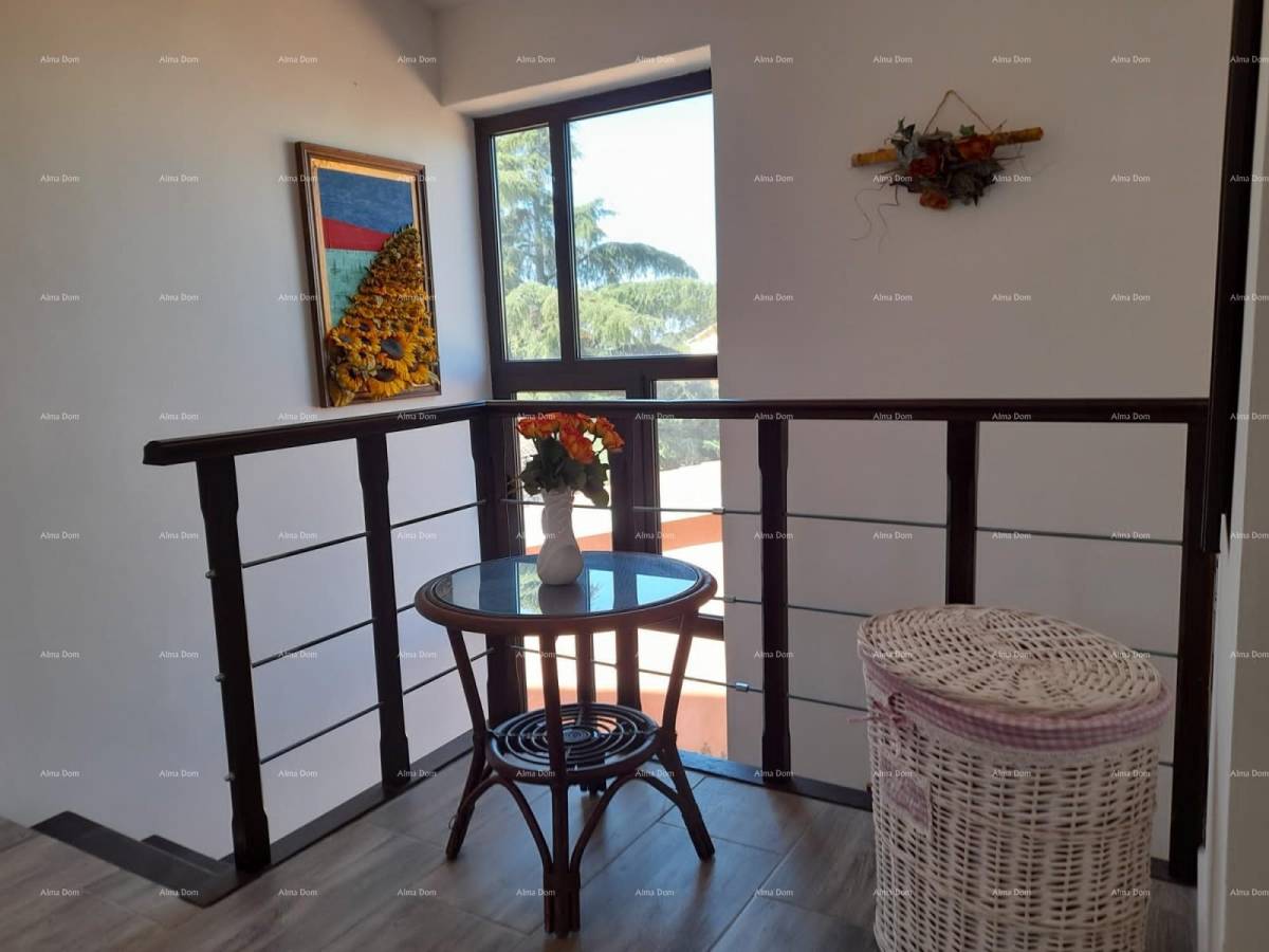 Sastoji se od prizemlja i kata koji uključuju dnevni boravak, kuhinju i blagavaonu, 4 spavaće sobe, 3 kupaone i balkone. Na velikoj, okućnici nalazi se bazen i sunčalište. Oko kuće postavljena nova keramika, pergola, stol za ručavanje i nova nadstrešnica s lounge namještajem.