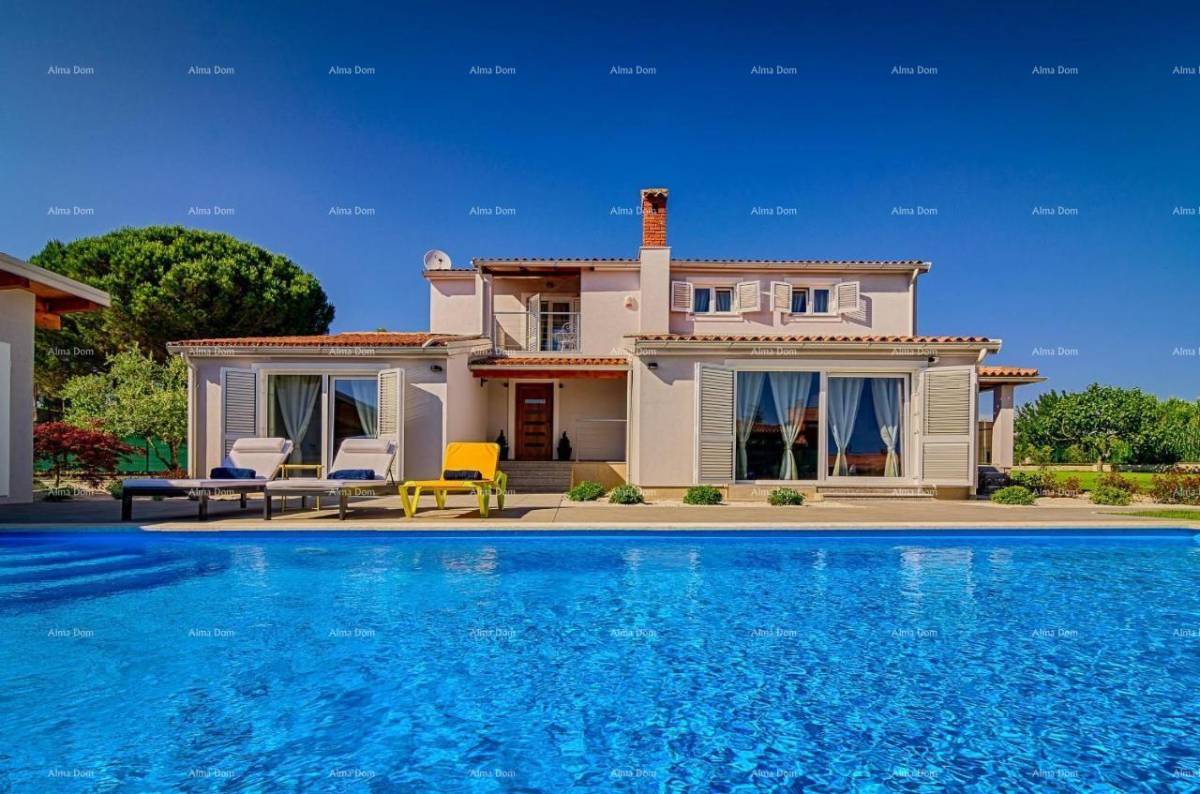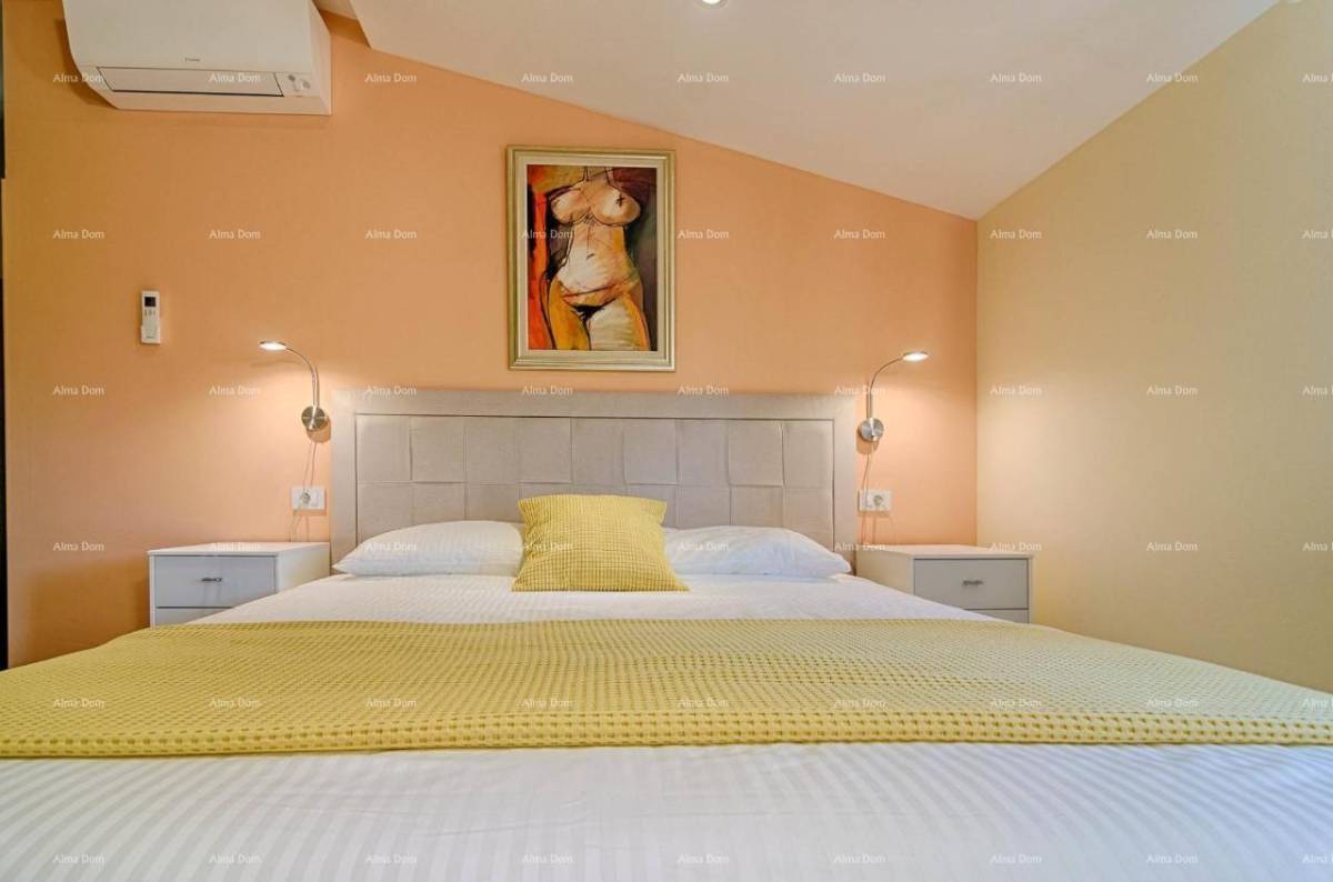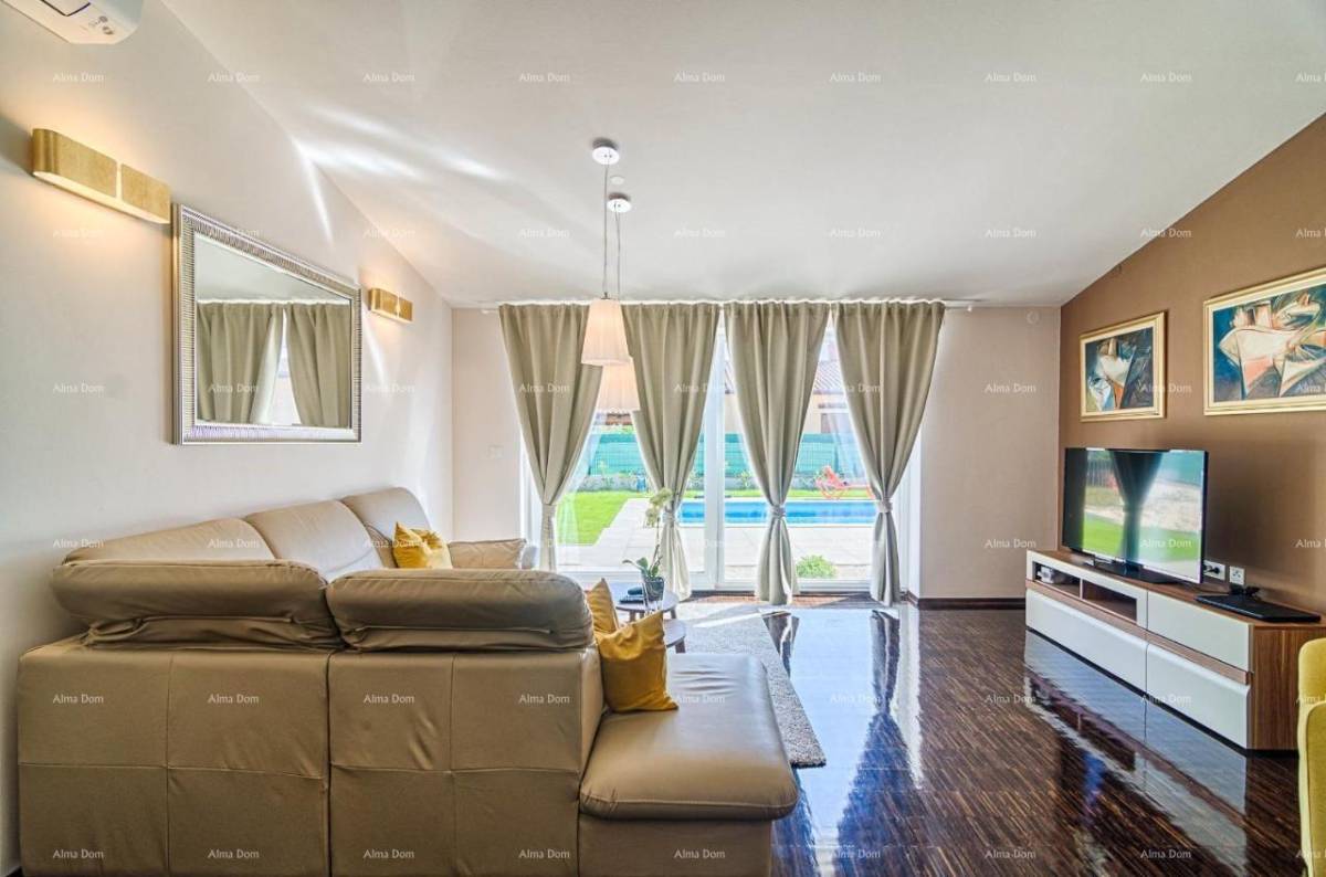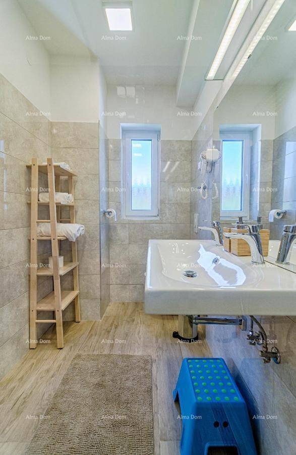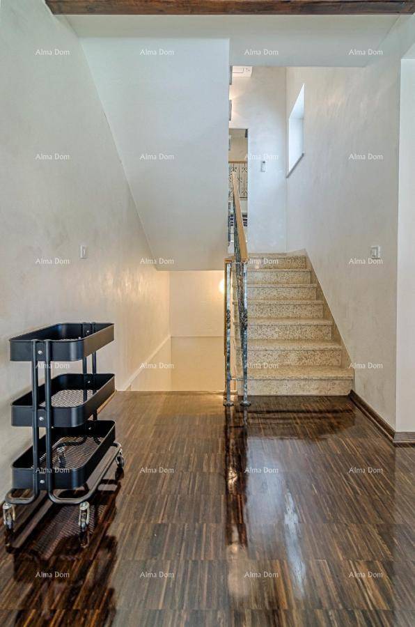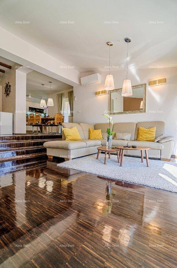 Opremljena konobom, terasom, grijanim bazenom 36m2 ,sunčalištem, natkrivena ljetna kuhinja i toalet. Sastoji se od stambene jedinice: suteren od 49 m² i dva kata površine 177 m².
