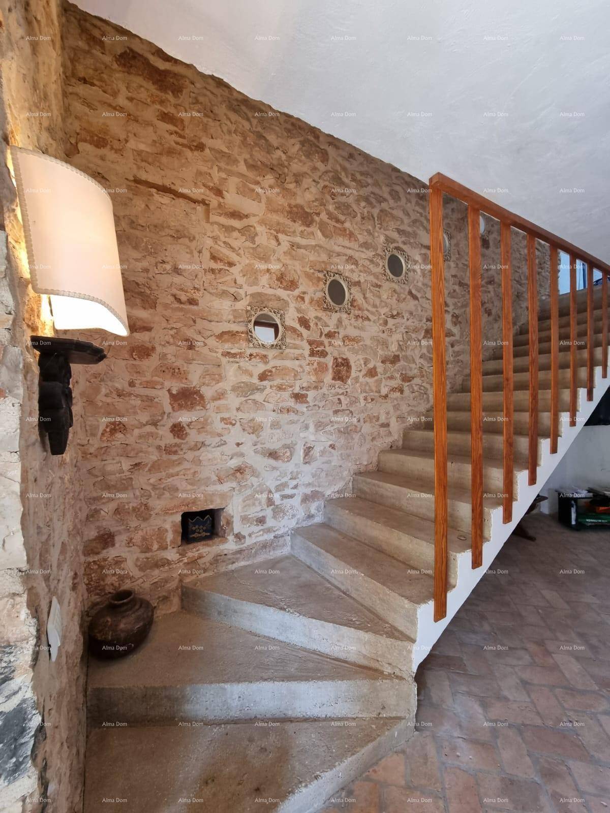 Kuća je originalno građena 1930 godine te je renovirana 2000 godine. Unutar kuće puno kamneih detalja, tavelice na podu u prizemlju kuće, na gornjem katu drveni podovi.