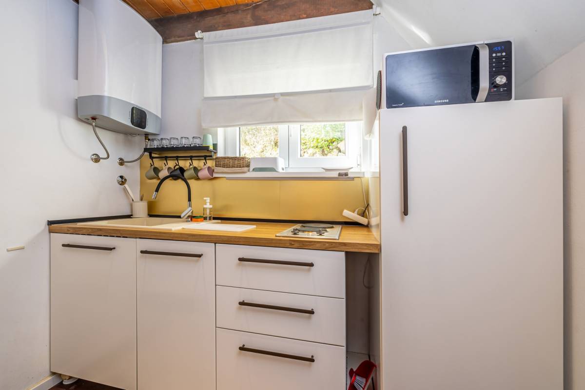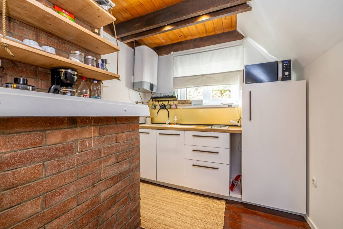 U prizemlju se nalaze kuhinja, dnevni boravak te kupaonica. Iz dnevnog boravka izlazi se na terasu.