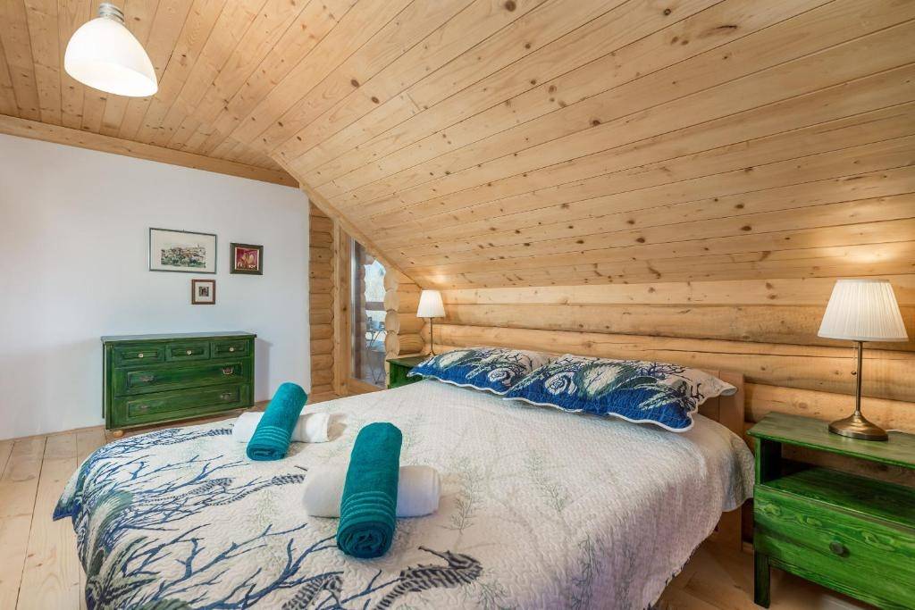 Do potkrovlja dolazimo unutarnjim stepeništem a tu se smjestile tri spavaće sobe i kupaonica te izlaz na balkončić.