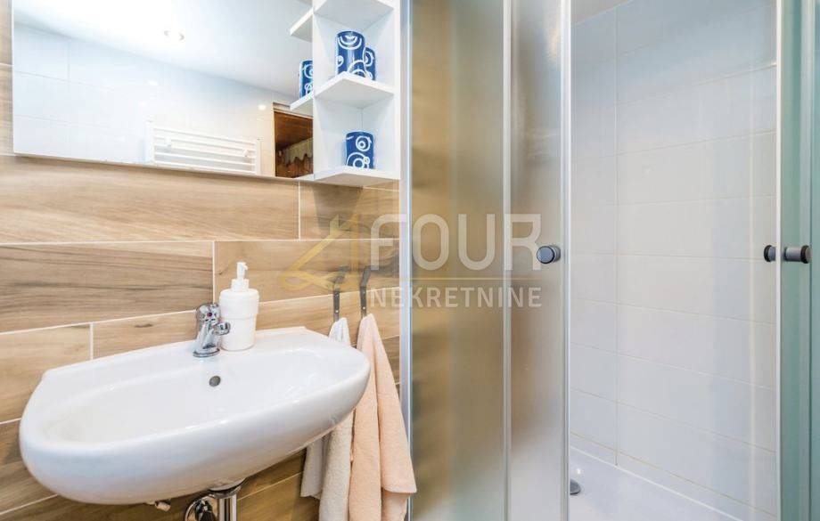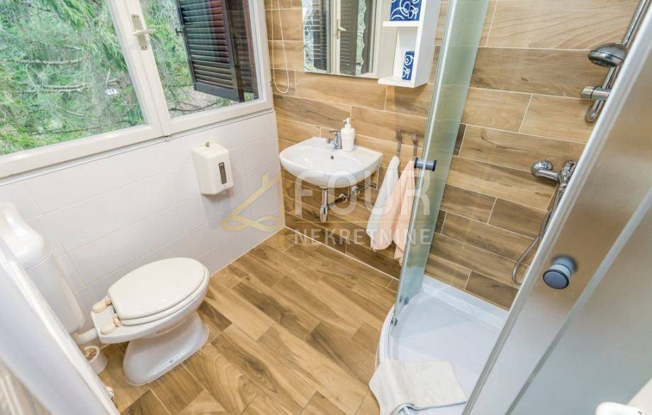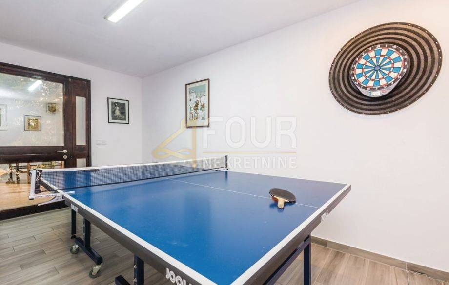 U prizemlju se nalaze terasa, kuhinja, prostorija sa zabavnim sadržajem te spremište. Na 1. katu nalazi se još jedna kuhinja, dnevni boravak i blagovaonica, kupaonica i terasa, dok su u visokom potkrovlju dvije sobe i balkon.