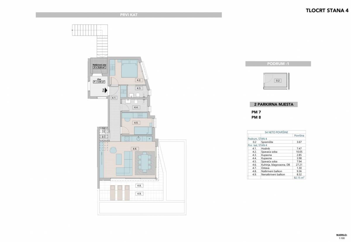 Penthouseu pripada i spremište u podrumu od 4,5 m² te dva parkirna mjesta, što dodatno povećava komfor svakodnevnog života.