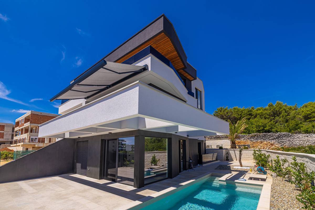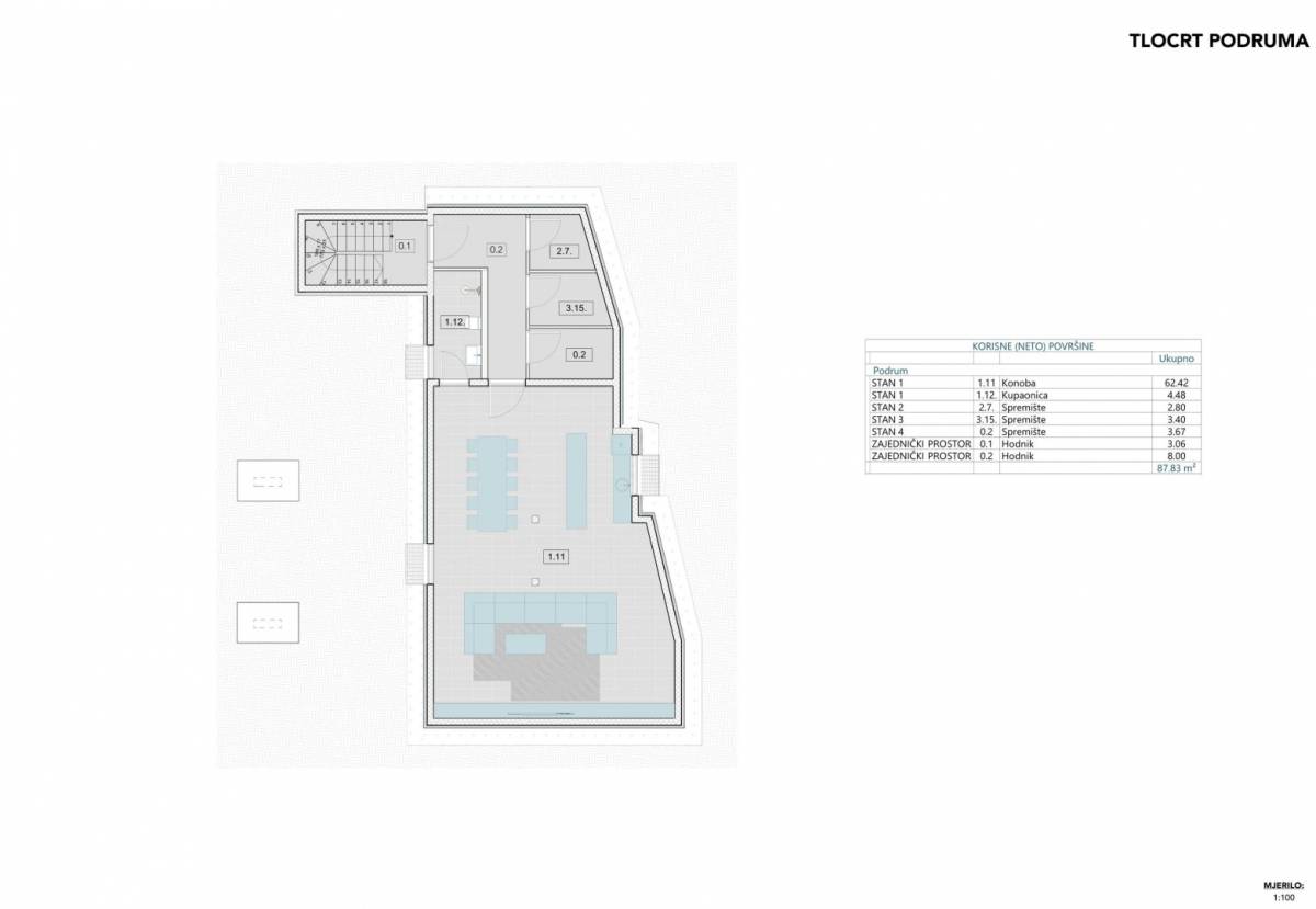 Stan se sastoji od prostranog ulaznog prostora, otvorenog dnevnog boravka povezanog s kuhinjom i blagovaonicom, tri udobne spavaće sobe, dvije moderne kupaonice, ostave te natkrivene terase. Terasa vodi na uređenu i privatnu okućnicu s bazenom i sunčalištem, što ovaj apartman čini idealnim za opuštanje i uživanje tijekom cijele godine.