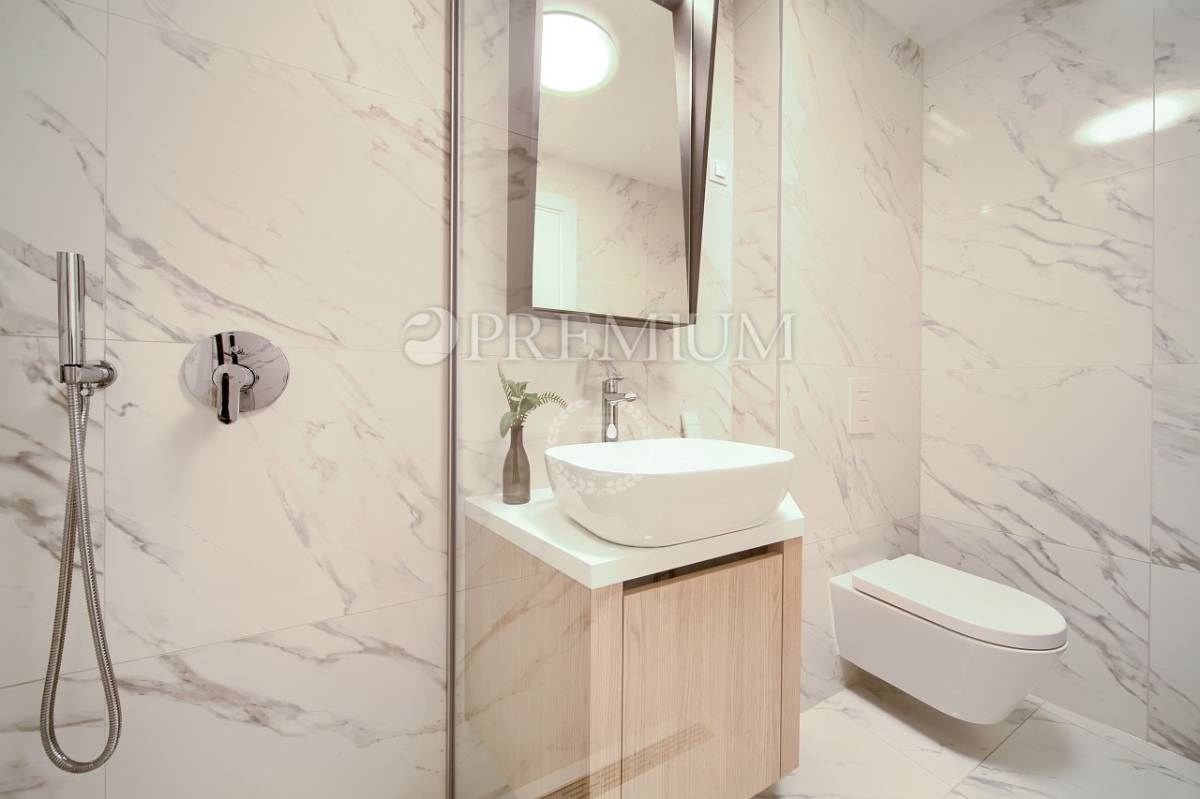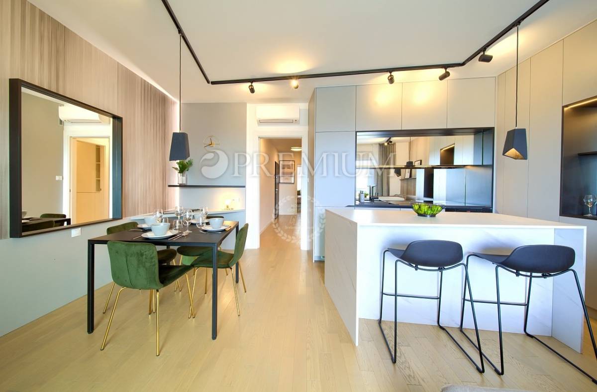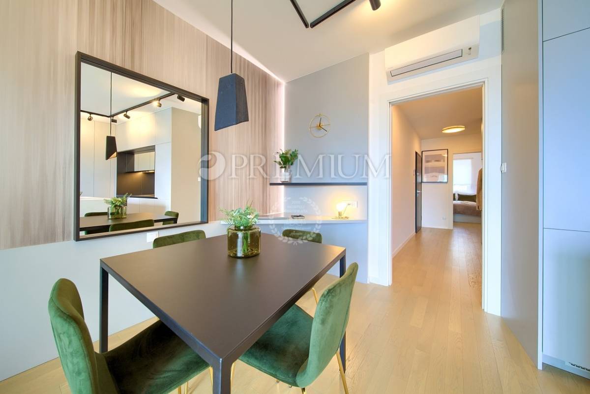 Prodaje se potpuno namješten, a sav namještaj uključen je u cijenu. Apartman karakterizira moderan dizajn, kvalitetna gradnja i funkcionalan raspored prostorija. Sve prostorije su klimatizirane, dok su kupaonice opremljene podnim grijanjem, što osigurava ugodan boravak tijekom cijele godine. Uz apartman dolaze i dva parkirna mjesta.