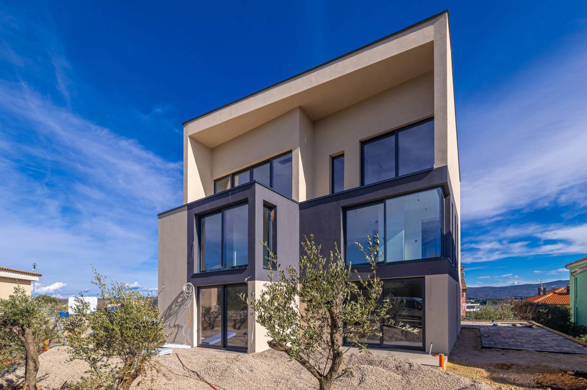 Penthouse apartman neto stambene površine 110,24 m², uz terase ukupne površine 30,89 m², smješten je na drugom katu novogradnje u gradu Krku te se ističe vlastitim, odvojenim ulazom koji osigurava dodatnu privatnost i ekskluzivnost. Ukupna korisna površina apartmana s terasama iznosi 141,13 m².