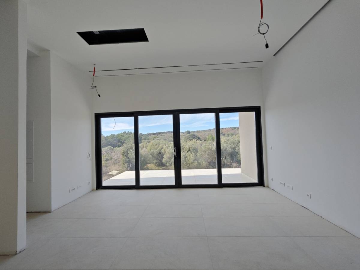 Vanjska aluminijska stolarija s troslojnim staklima i električnim brisolej lamelama sa senzorima pruža optimalnu zaštitu od vanjskih utjecaja i doprinosi energetskoj stabilnosti prostora. Unutarnja stolarija modernog je dizajna s nevidljivim dovratnicima, a podne obloge kombinacija su kvalitetne keramike i parketa.