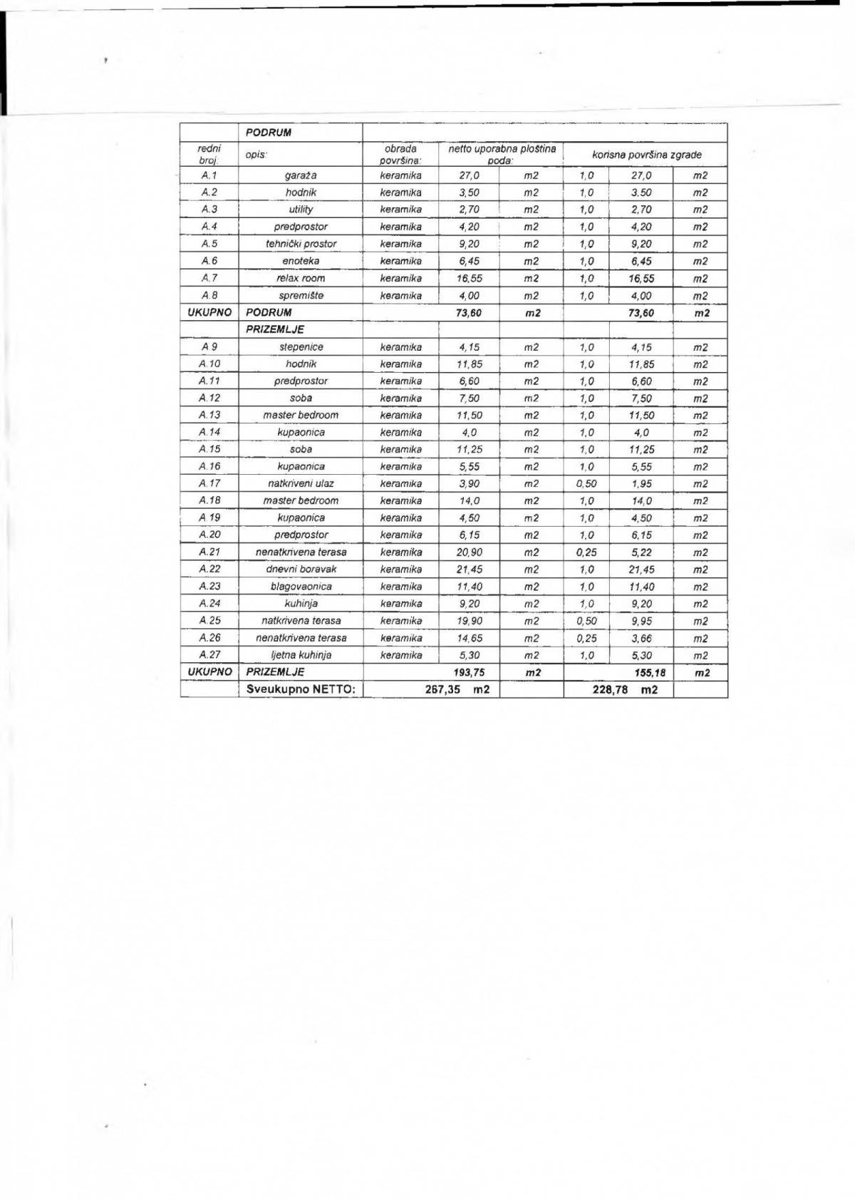 Građevinska dozvola za prizemnicu netto kvadrature 155 m2, podrum 74 m2.