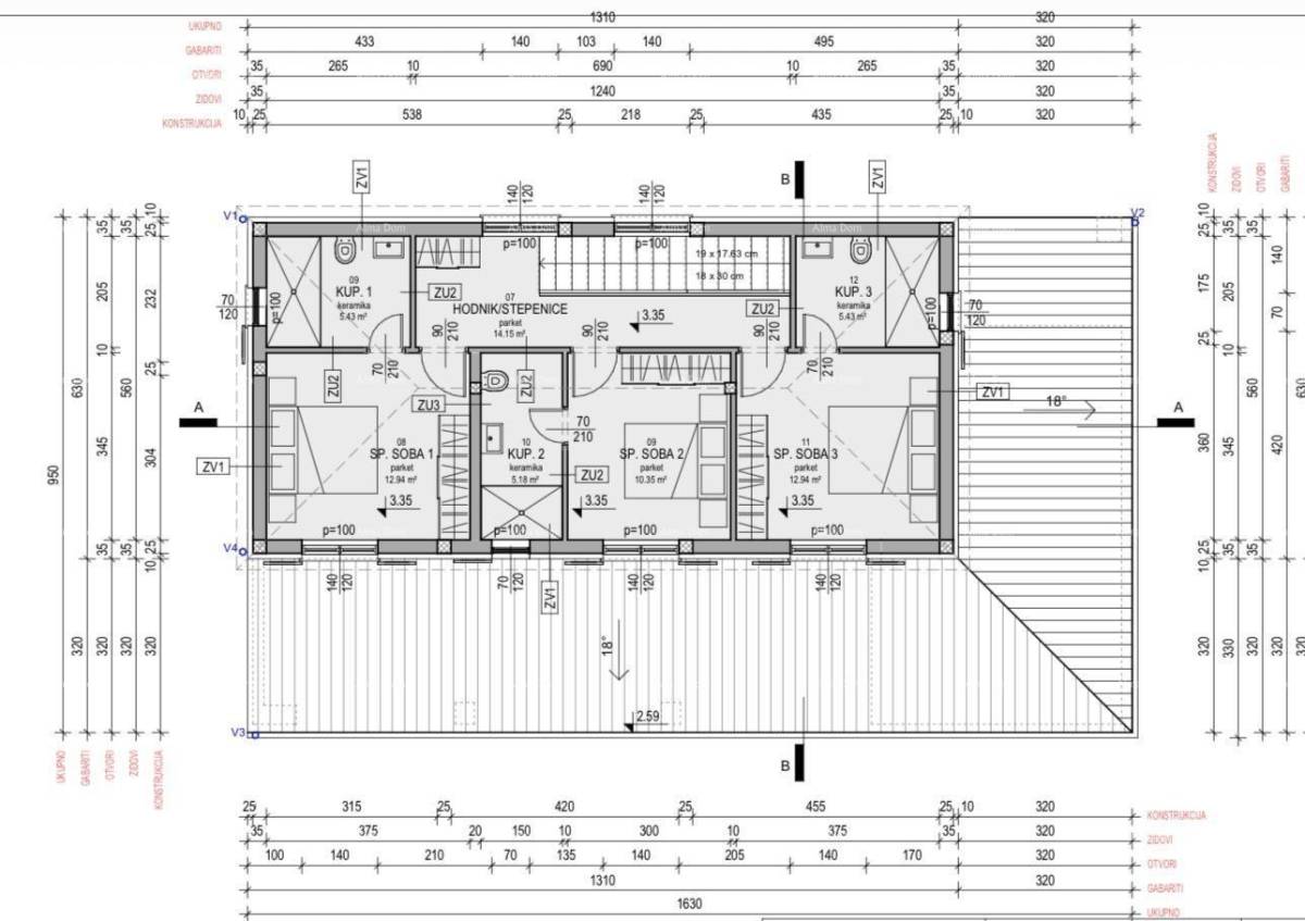 3 spavaće sobe na katu