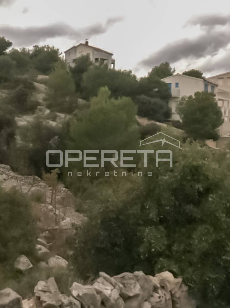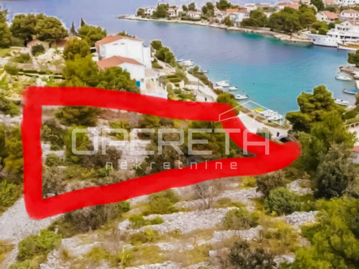 Atraktivno građevinsko zemljište površine 988 m² smjestilo se na jedinstvenoj lokaciji u Ražnju, u uvali Očeva luka, prvi red do mora.