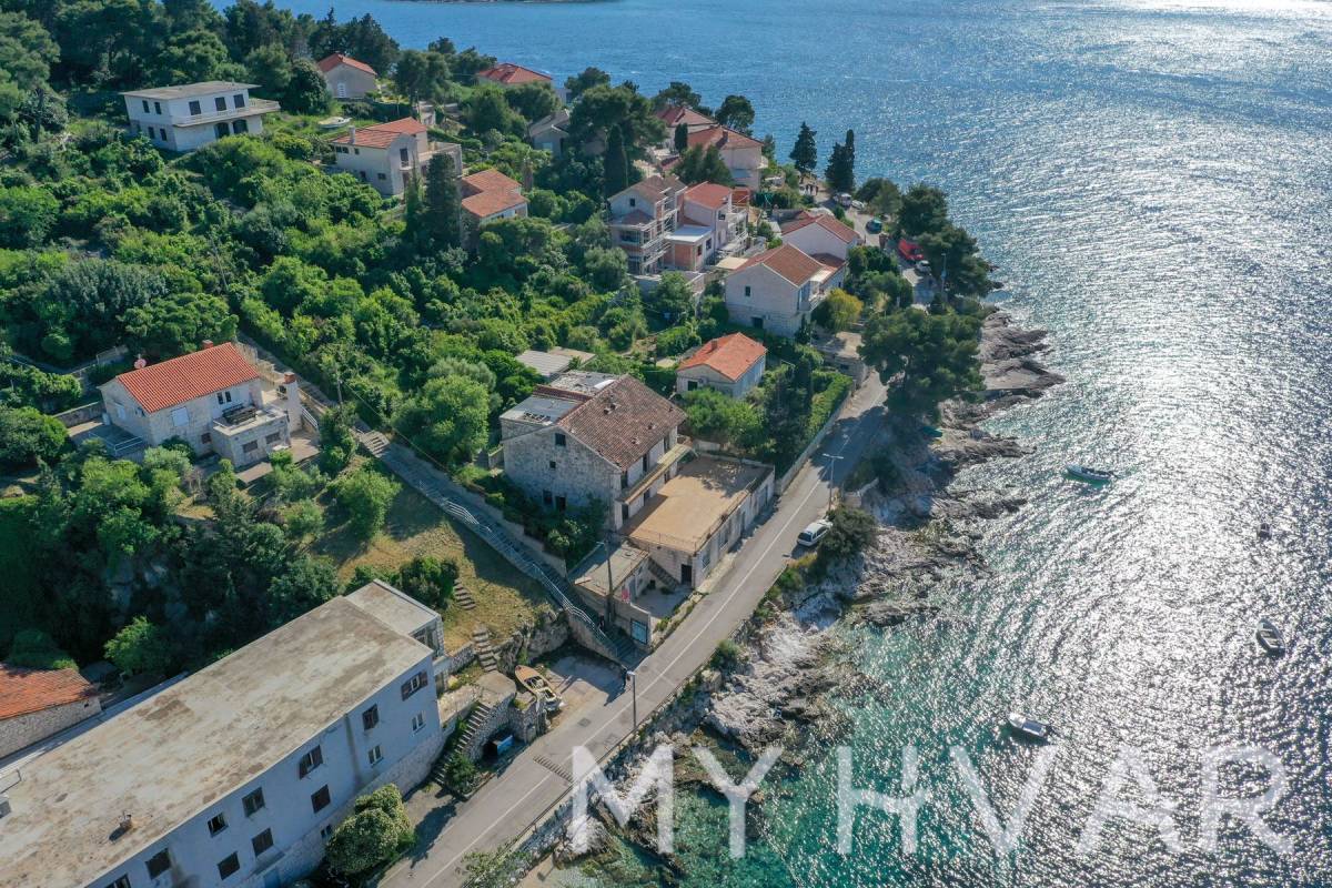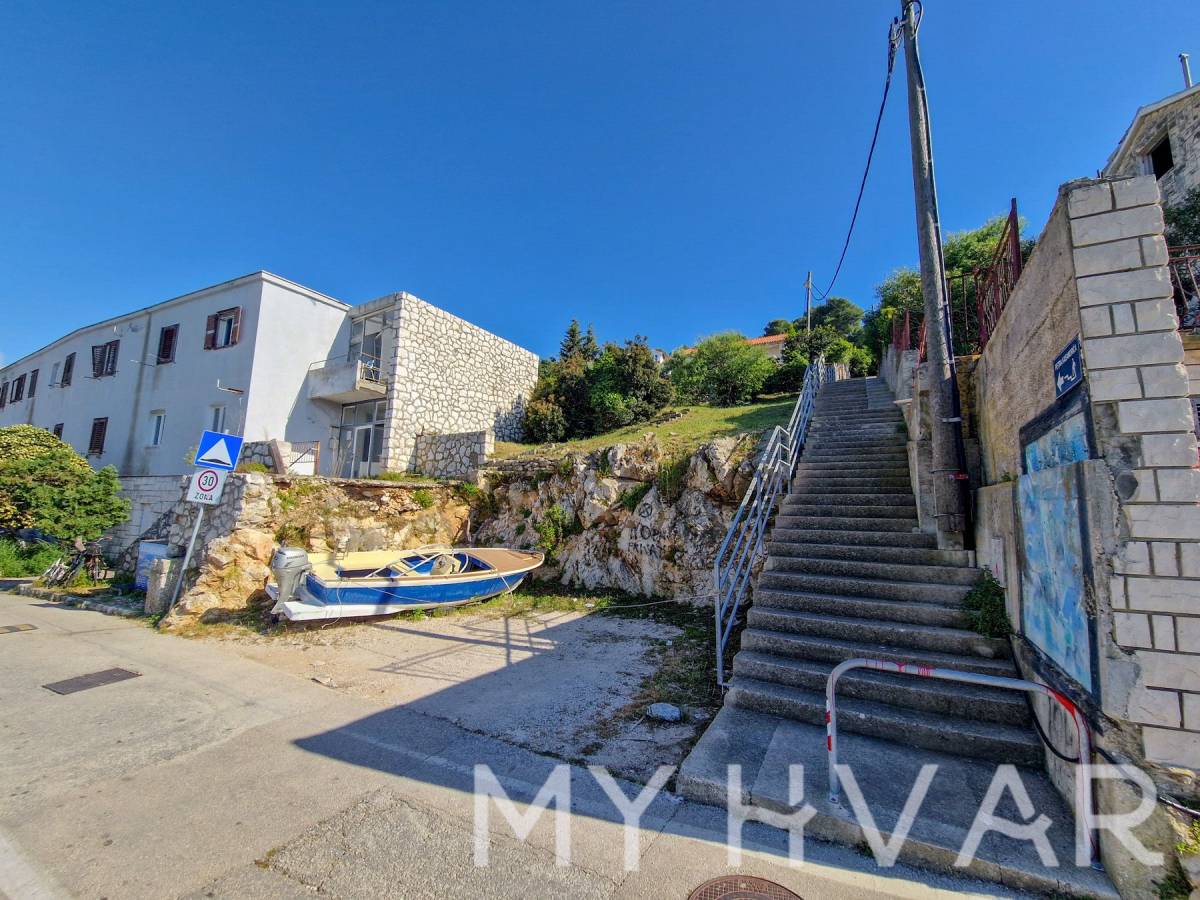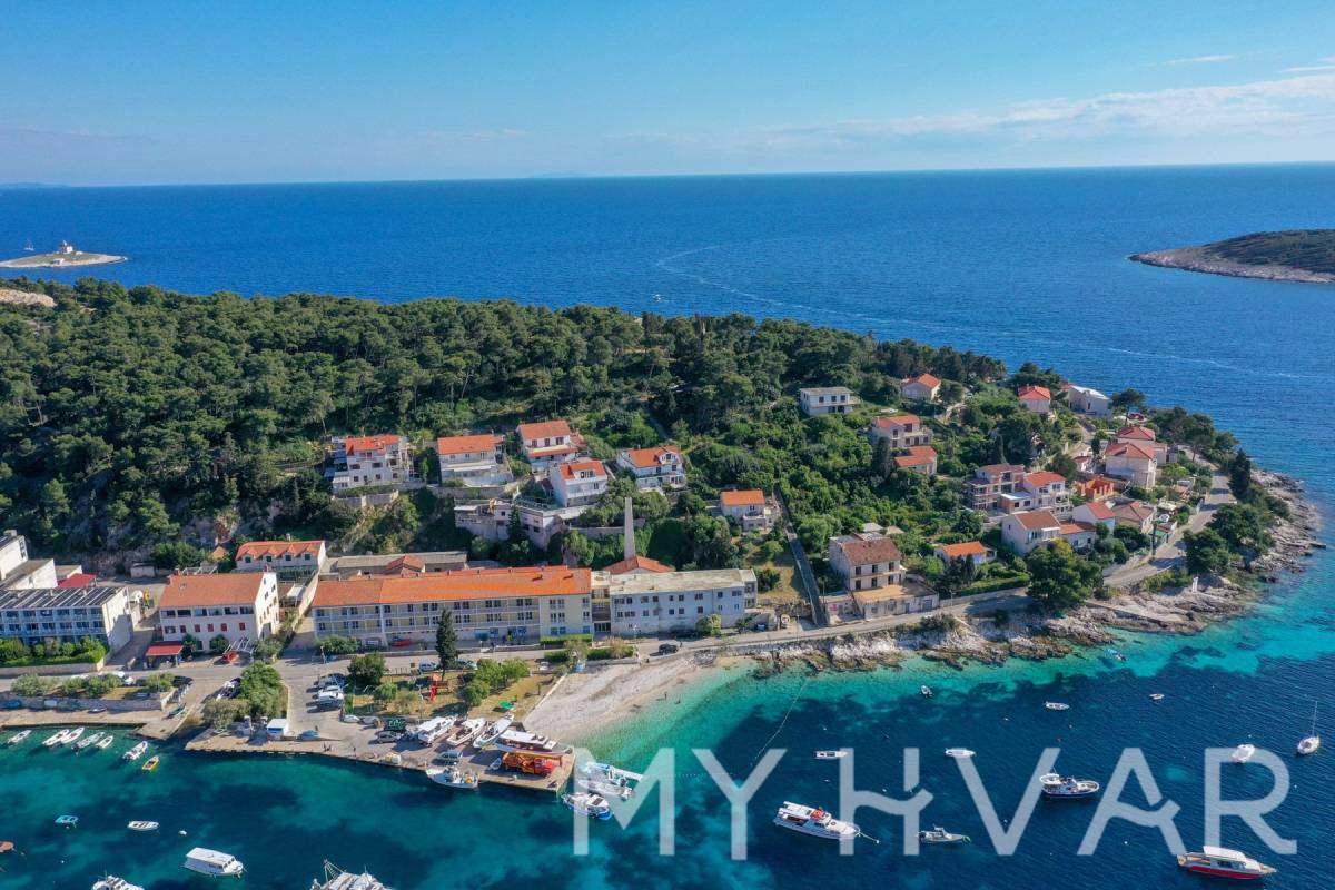 Otkrijte primamljivu priliku s ovim vrhunskim građevinskim zemljištem smještenim u prestižnom prvom redu do mora, u samom srcu grada Hvara. S građevinskom dozvolom za komercijalno-stambenu mješovitu namjenu, ovo zemljište nudi zapanjujuću panoramu grada Hvara i plavetnila Jadranskog mora. Predloženi objekt obuhvaća suteren, prizemlje i dva dodatna kata ukupne površine 450 m². Dozvolom je obuhvaćena podzemna garaža za pet vozila i vanjski parking površine 100 m². Osim toga, zamislite ležerne dane uz otvoreni bazen koji nudi dubine od 130 do 170 cm.