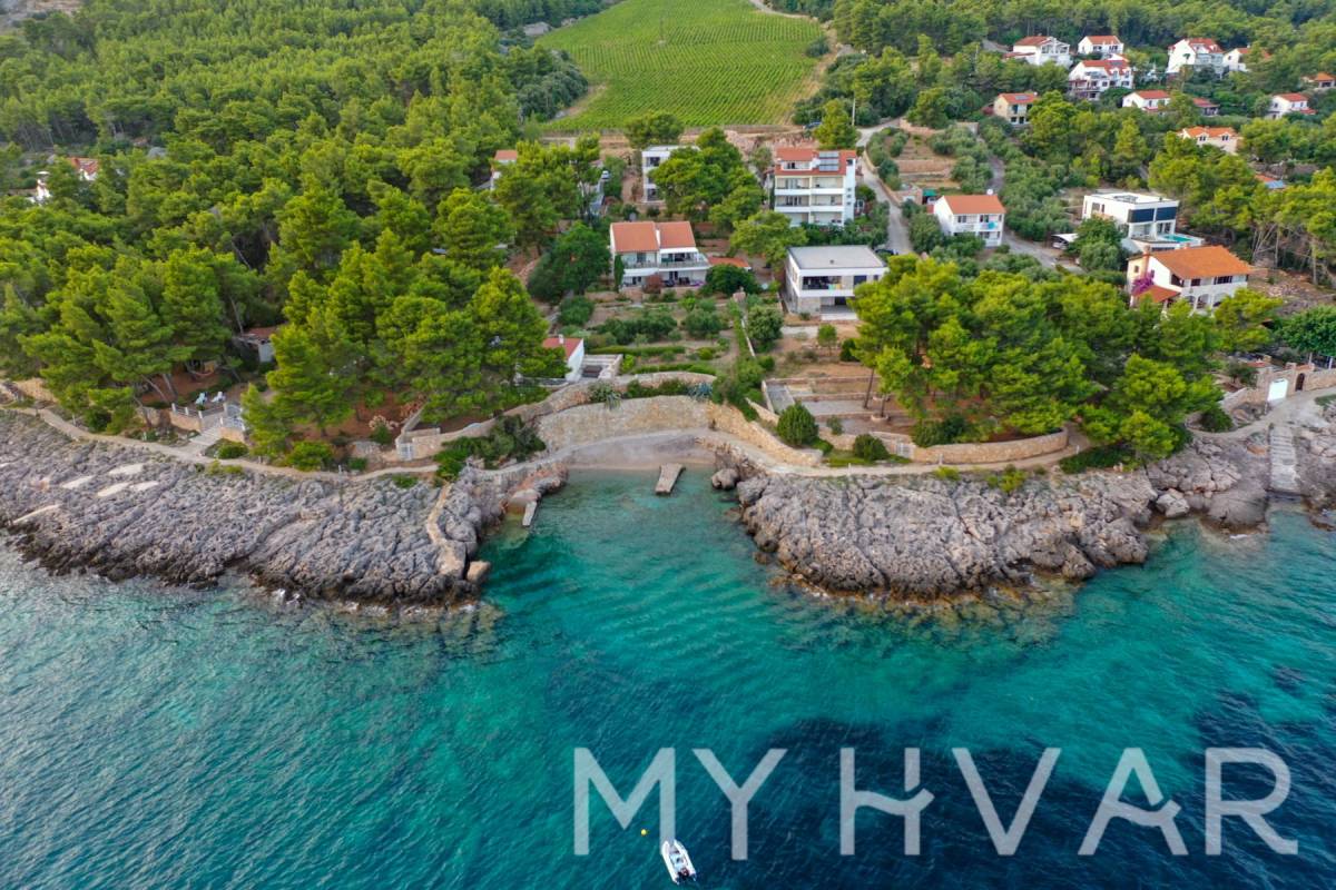 Otkrijte svoje primorsko utočište iz snova u mirnom raju Zavale, gdje je dostupno samo nekoliko kuća. Prihvatite ljepotu prirode koja oduzima dah samo 120 metara od očaravajućeg Jadranskog mora. Ova ekskluzivna nekretnina prostire se na oko 1.200 m².
