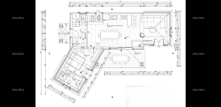 Iz kuhinje je pogled na vrt i zelenilo ali također iz i blagovaone se izlazi na predivnu veliku terasu, bazen i sunčalište kao produžetak interijera, idealna za vrtne zabave i večernja opuštanja. Kuća je maksimalno funkcionala a sa tri spavaće sobe, kupaonice i wc-a, te predprostorom za udoban smještaj obitelji ili grupe prijatelja.