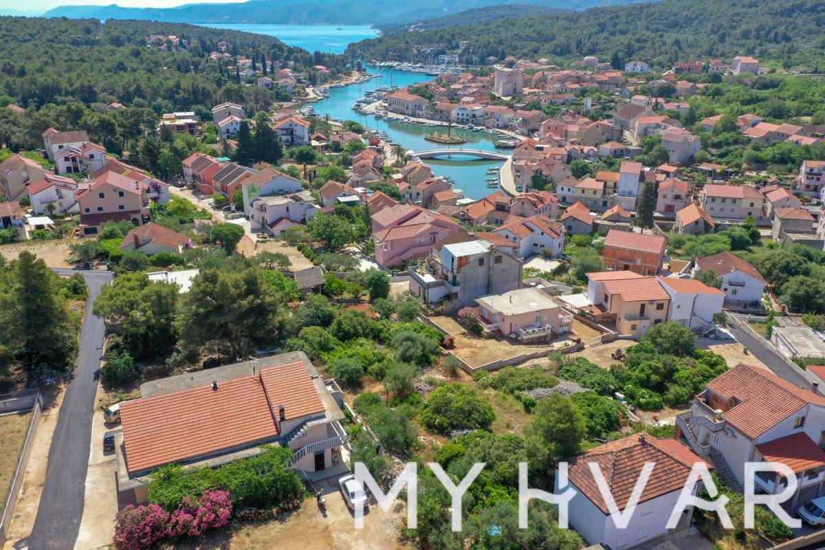 Približno 1.200 m² građevinskog zemljišta na prodaju u Vrboskoj, samo nekoliko minuta hoda od šarmantne luke. Zemljište je dostupno za kupnju u cijelosti ili podijeljeno na dvije parcele od približno 600 m².